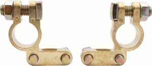 Minusleitungen könnt ihr vor dem Anschluss an die Batterie mit einer Neutralleiter-Klemme* bündeln. Hier klemmt ihr all eure Minus-Leitungen fest und legt am Ende ein 6,0 mm² dickes Kabel zum Minuspol. Zur Befestigung an der Batterie haben wir Polklemme* verwendet.