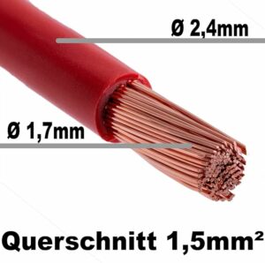 Halten wir das Thema weiterhin einfach. Der Querschnitt einer Leitung wird meist in [mm²] angegeben und je größer der Querschnitt ist, desto mehr Strom kann hindurch fließen. Wenn ihr Verbraucher mit einer hohen Leistung [W] habt, sollte ihr einen passenden Leitungsquerschnitt wählen.