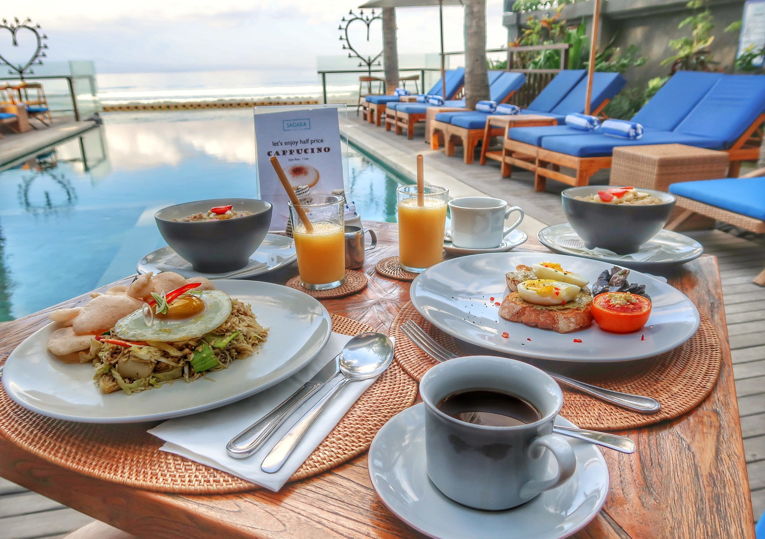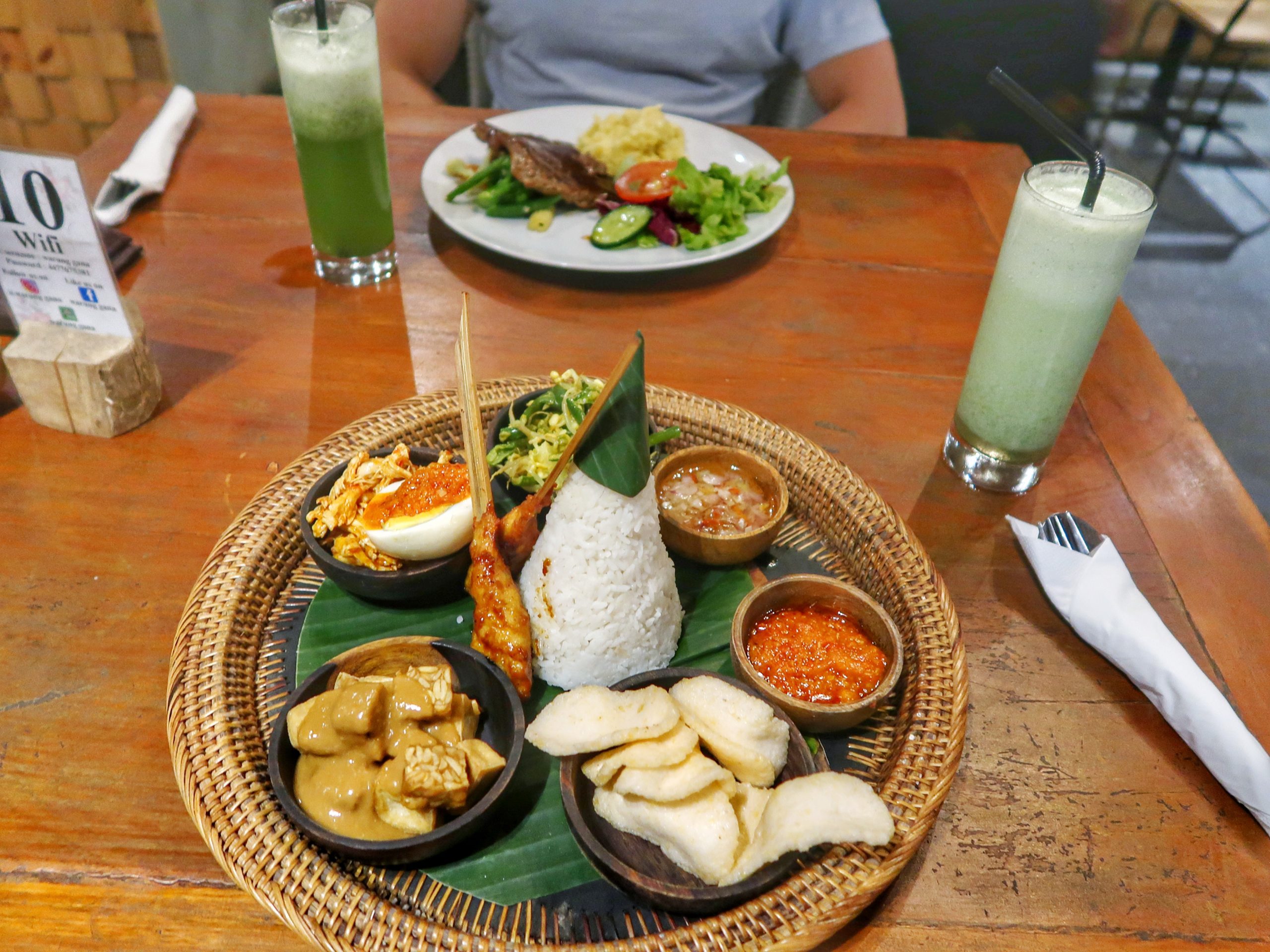 Auf Bali haben wir wirklich jeden Tag etwas zu Essen geholt. Das Essen ist günstig und ihr findet an jeder Ecke etwas Leckeres zum Probieren. Ob es nun um die Mittagszeit bei einem der Ausflugsziele oder Abends entspannt am Strand war, wir haben viele Locations getestet und wollen euch im Folgenden von unseren Highlights berichten. Da Angelika in Bali angefangen hat, sich vegan zu ernähren, berichten wir euch vorwiegend über Restaurants mit veganen Gerichten auf der Karte.