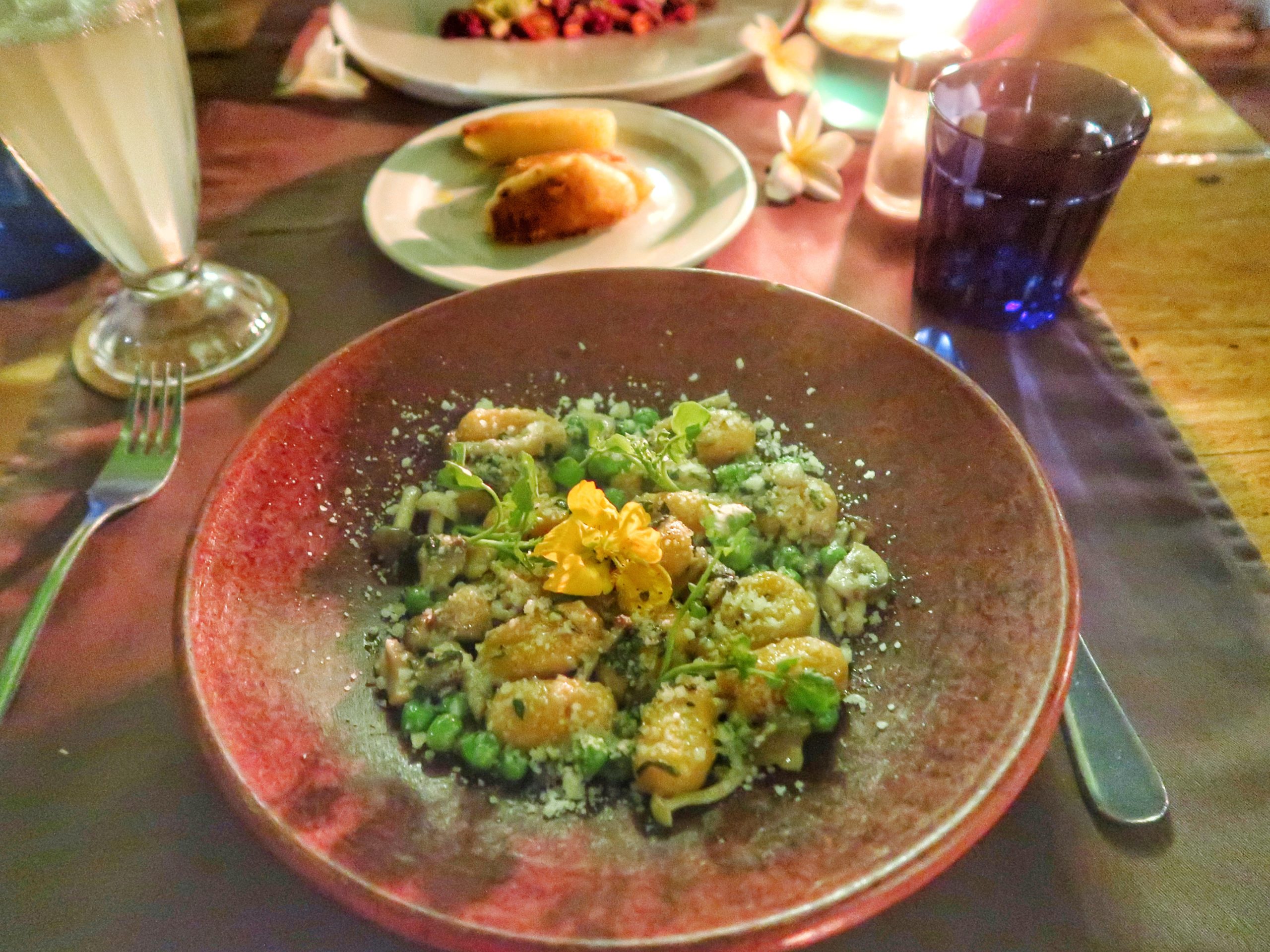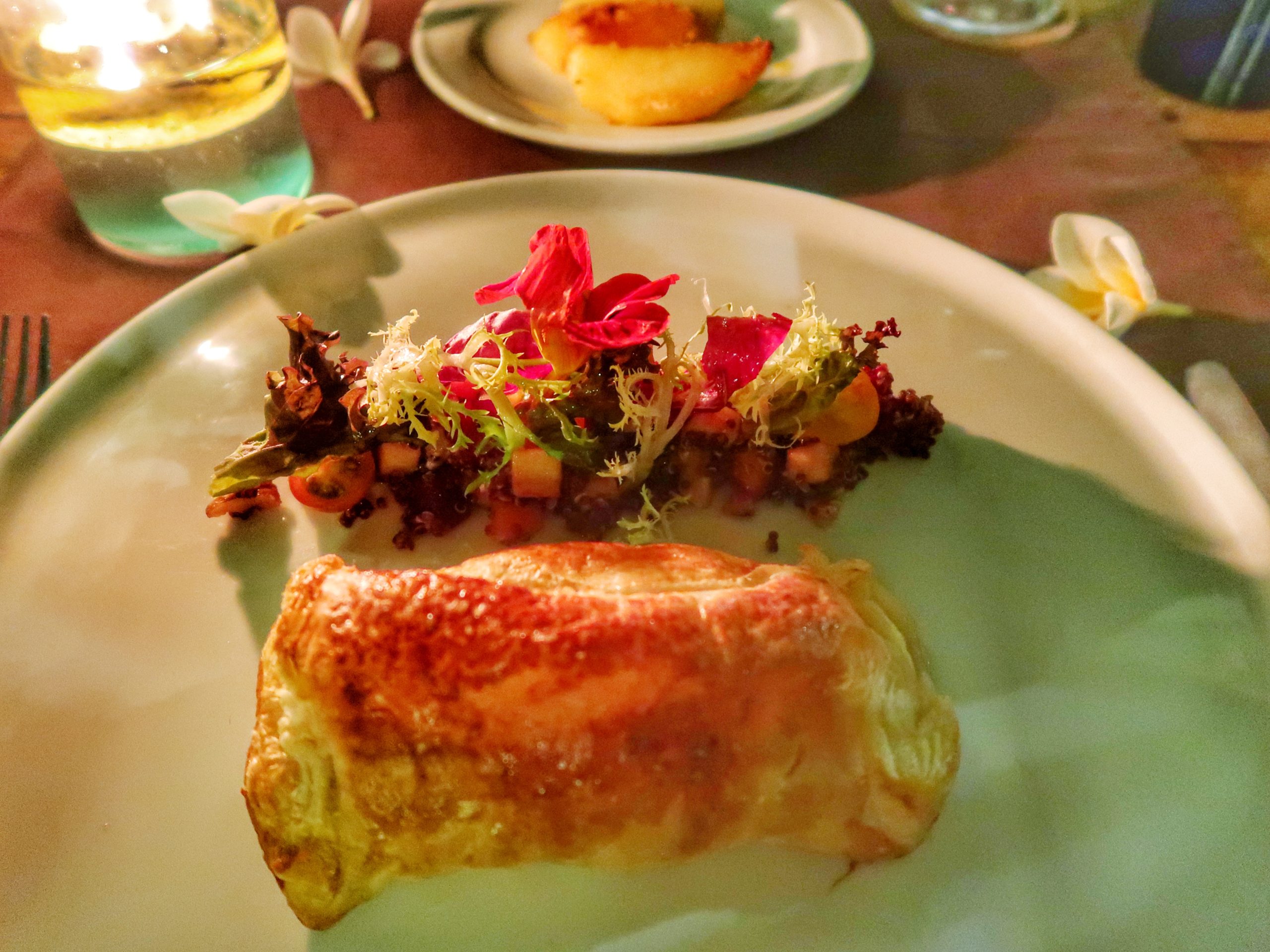 Es ist unser letzter Abend auf Bali gewesen und wir haben uns ein 3-Gänge-Menü bestellt 😀 Angefangen bei Frühlingsrollen, selbstgemachte Süßkartoffel-Gnocci, Haloumi-Käse bis hin zu einer dekadenten Nachspeise in Form eines Schokoladenturms, wir wurden richtig verwöhnt. Das Personal war sehr freundlich und zuvorkommend und wir haben den Abend bei Live-Jazz und einem Glas Wein ausklingen lassen.