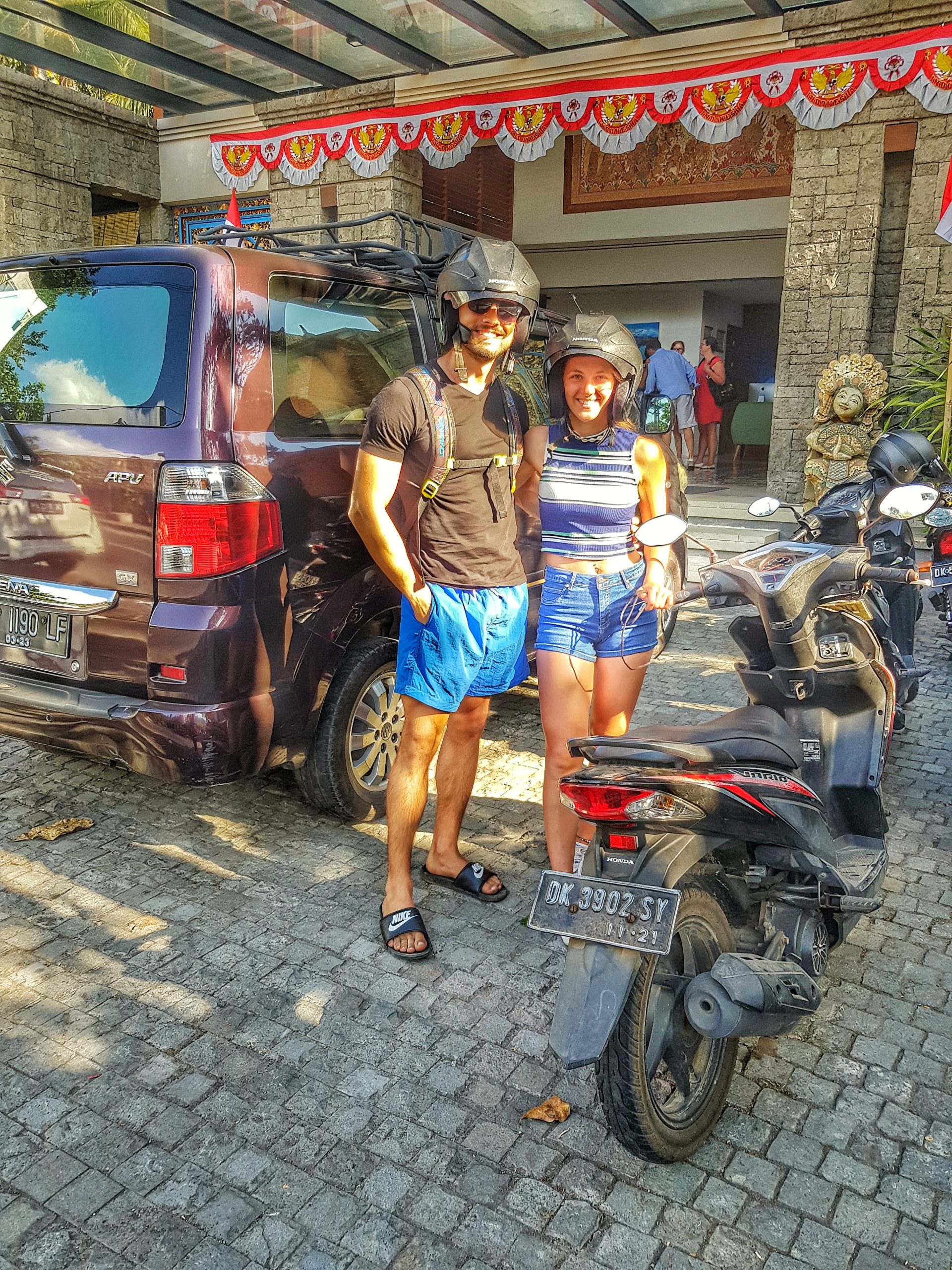 Die meisten Einheimischen nutzen für die Fortbewegung in Bali einen Roller. Natürlich gibt es hier auch andere Regeln, als bei uns in Deutschland. Die Balinesen fahren meistens ohne Helm und mit drei bis vier Personen auf einem Fahrzeug. Wir haben sogar gesehen, dass ein Säugling zwischen dem Fahrer und der Mutter saß - wirklich krass 😀 In Bali fahren Kinder ab 10 Jahre schon alleine Roller! Aber dies scheint dort ganz normal zu sein. Auch wir konnten es nicht lassen wenigstens wenigstens für einen Tag einen der schnittigen Flitzer auszuleihen.