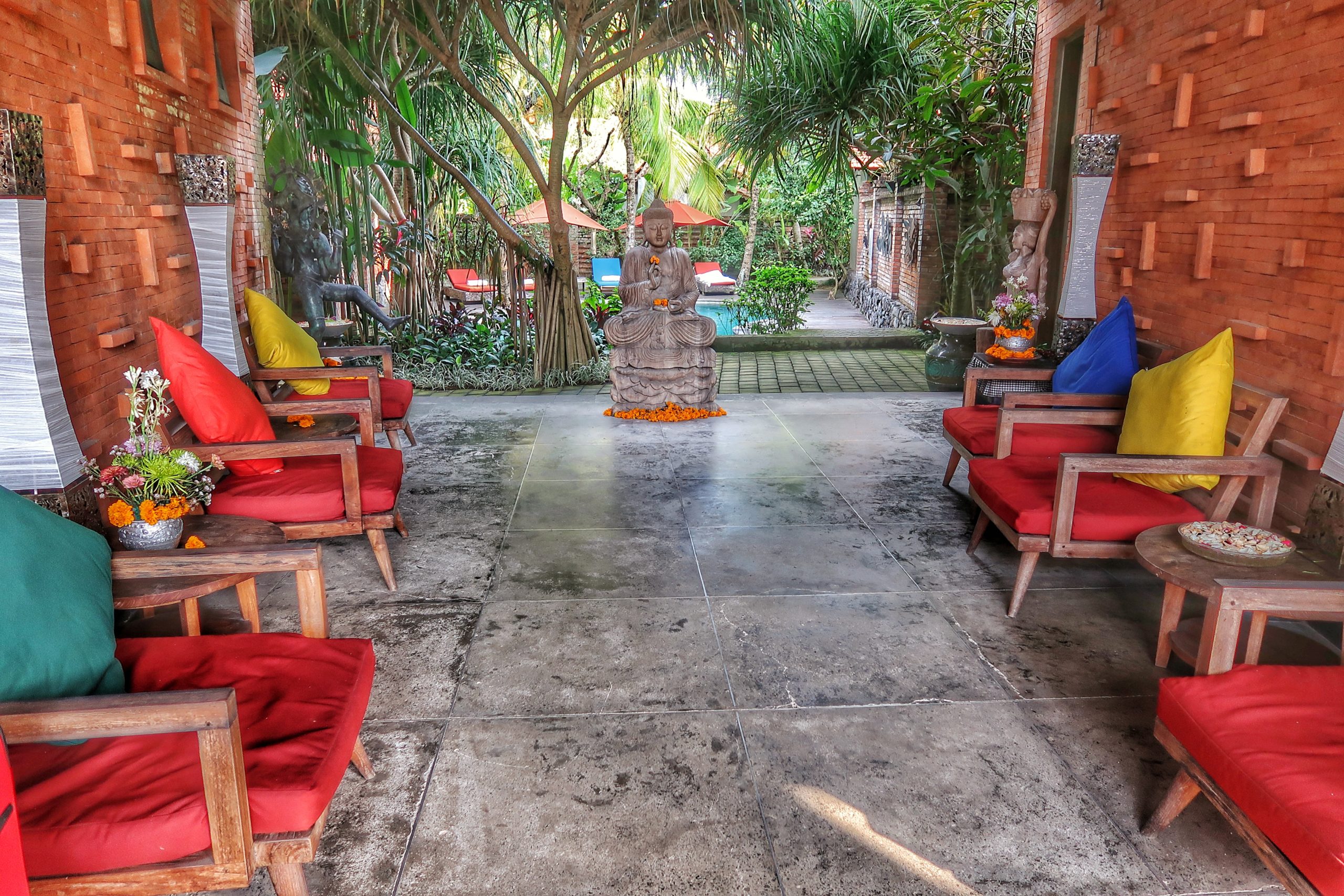 Wir haben uns gefühlt, als wären wir mitten im Dschungel gewesen. Überall waren Pflanzen, Blumen, Bäume und Palmen. Dennoch hat das Hotel einen luxuriösen Standard geboten, der sich gut mit der tropischen Umgebung vereinte. Das Frühstücksbuffet ist angemessen und reichte von Gemüse, Aufstrichen, Brote, gebratene Nudeln bis hin zu deftigen Würsten, Croissants oder Pancakes.