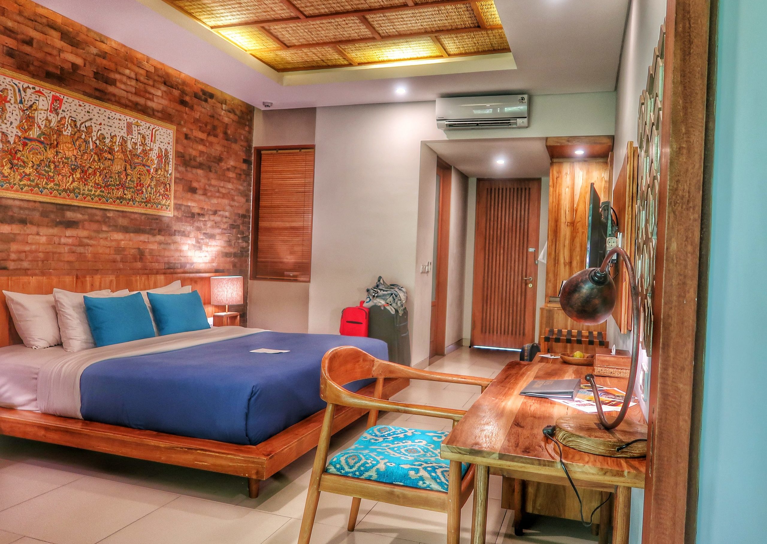 Unsere erste Unterkunft ist das wunderschöne Suarti Boutique Village in Ubud gewesen. Nach unserer Ankunft hat es für jeden erstmal eine hausgemachte Limonade gegeben. Die perfekte Erfrischung! Nach dem Einchecken hat uns das Personal zu unserem eigenen kleinen Bungalow begleitet, indem wir die nächsten 3 Nächte geschlafen haben. Die wunderschöne Bleibe hat ein Schlafzimmer, ein Badezimmer mit Dusche + Badewanne und eine eigene kleine Terrasse gehabt.