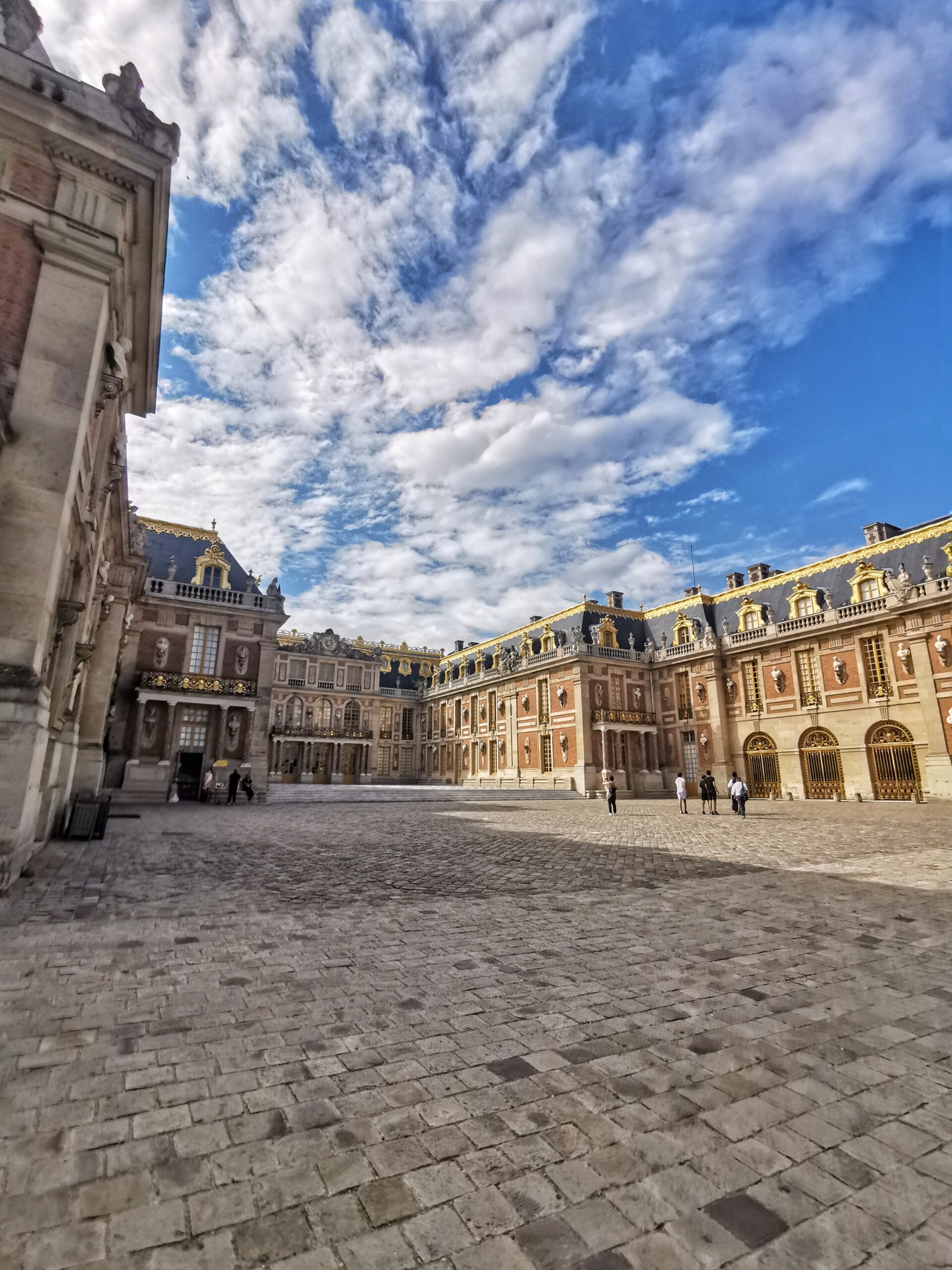 Nach dem Honour Gate erwartet euch ein großer Vorplatz, von dem ihr den prunkvollen Palast in seiner ganzen Größe bestaunen könnt. Ein absoluter Hingucker 😀 Wenn man das Gebäude und die dahinter liegenden Gärten von Versailles betrachtet, dann fällt sofort auf: Hier ist alles sehr symmetrisch angeordnet. Ja, der gute Ludwig hatte wohl besondere optische Ansprüche.