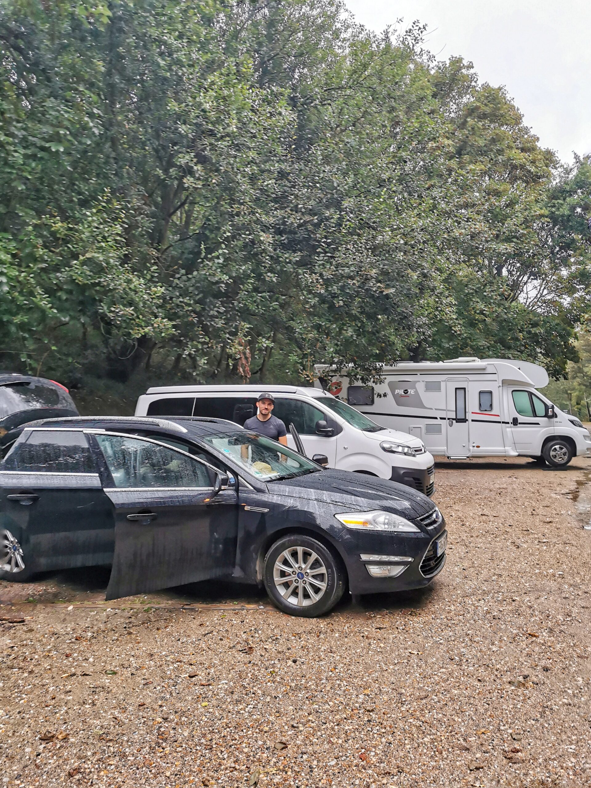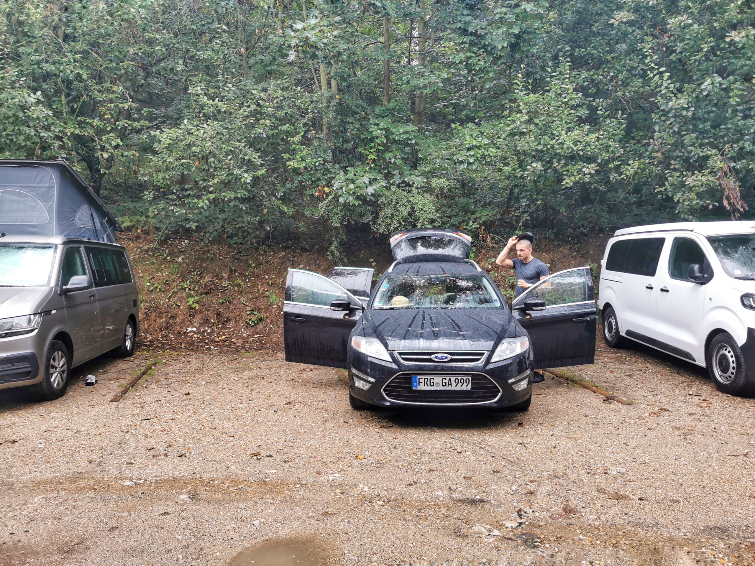 Als wir am Campingplatz angekommen sind, ist dieser nach Angaben des Betreibers schon ausgebucht gewesen. Michael hat an der Pforte noch etwas verhandelt und darauf aufmerksam gemacht, dass wir lediglich ein Auto ohne Markise haben und auch keinen Stromanschluss etc. benötigen. Nach einer kurzen Besichtigung des Geländes haben wir einen Stellplatz für 12€ / Nacht ergattert - ein absolutes Schnäppchen! 😀