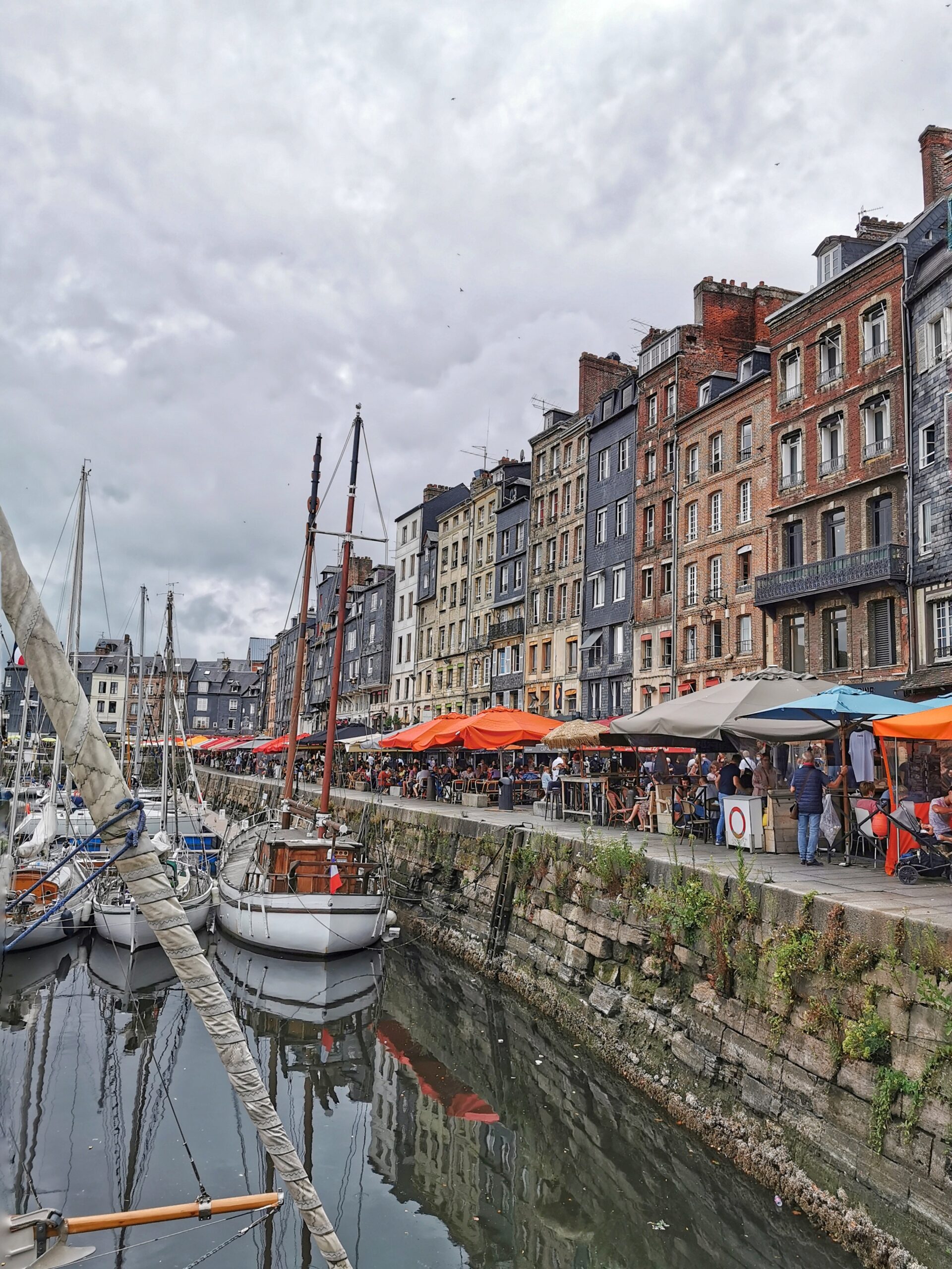 Ca. 50 km südlich von Etretat liegt die Hafenstadt Honfleur. Der malerische Ort, welcher direkt an der Mündung der Seine in den Ärmelkanal liegt, bezaubert vor allem durch den Panoramablick auf den alten Hafen und den kleinen Gassen mit unzähligen bunten Fachwerkhäusern. Hier haben wir ca. 1,5 h verbracht, sind durch die bunten Straßen geschlendert und haben unsere Füße am Hafen baumeln lassen und den Schiffen beim Ein- und Ausfahren zugesehen. Die Hafenstadt ist der perfekte Zwischenstopp um zu entspannen, spazieren zu gehen und die Seele baumeln zu lassen. Daumen hoch 😉