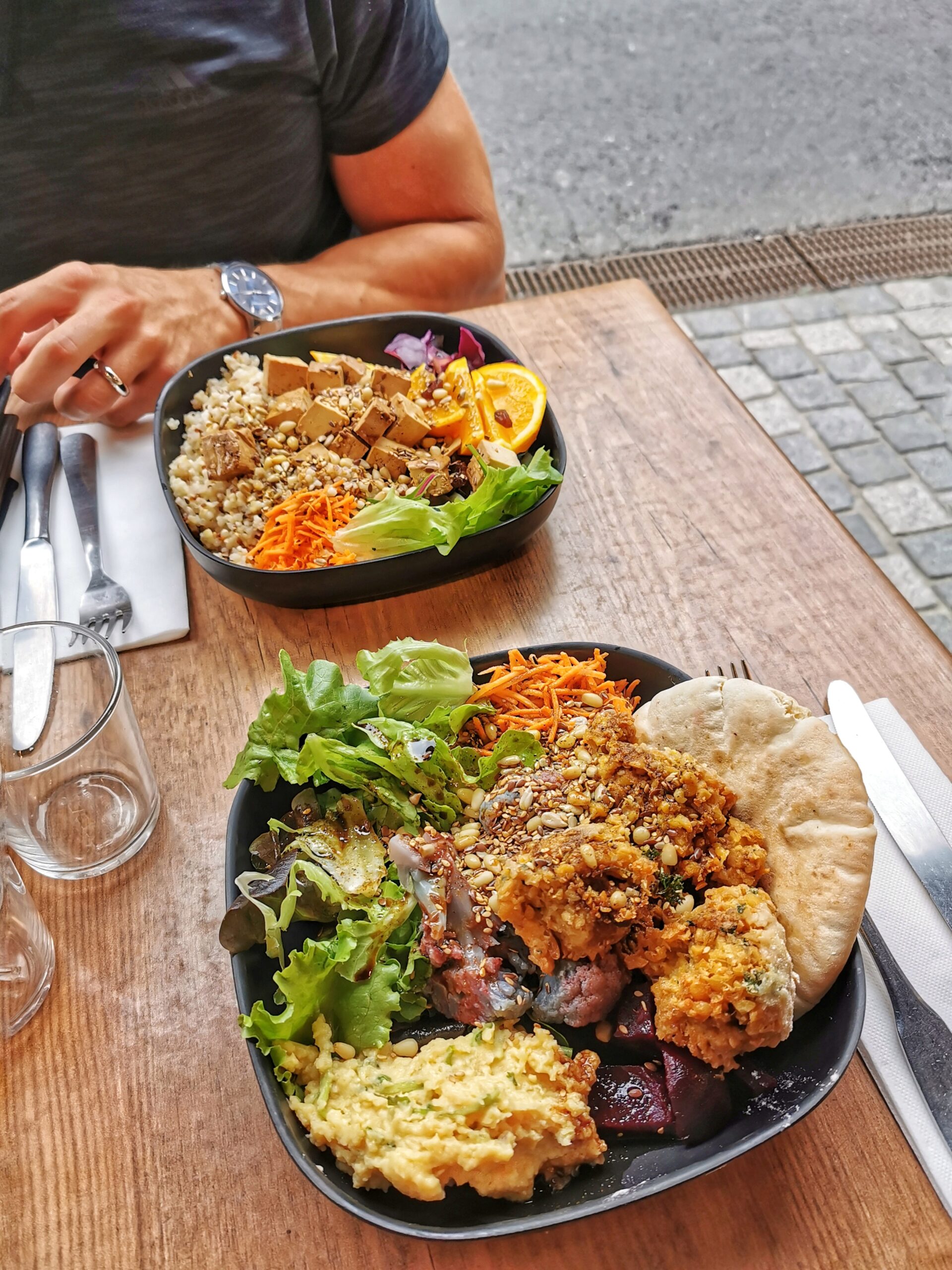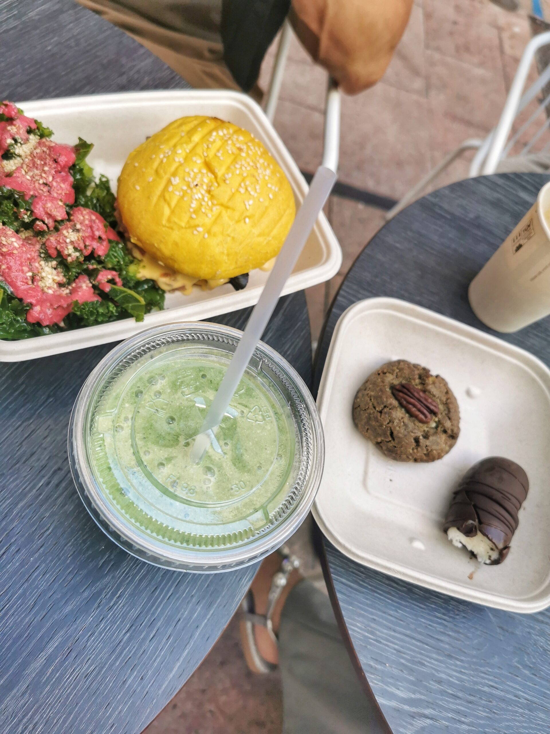 Brasserie mit leckeren Bowls, Salaten und Burgern. Das Restaurant bietet auch vegane Gerichte wie z.B. eine veganen Burger an, den sich Angelika gegönnt hat 😉