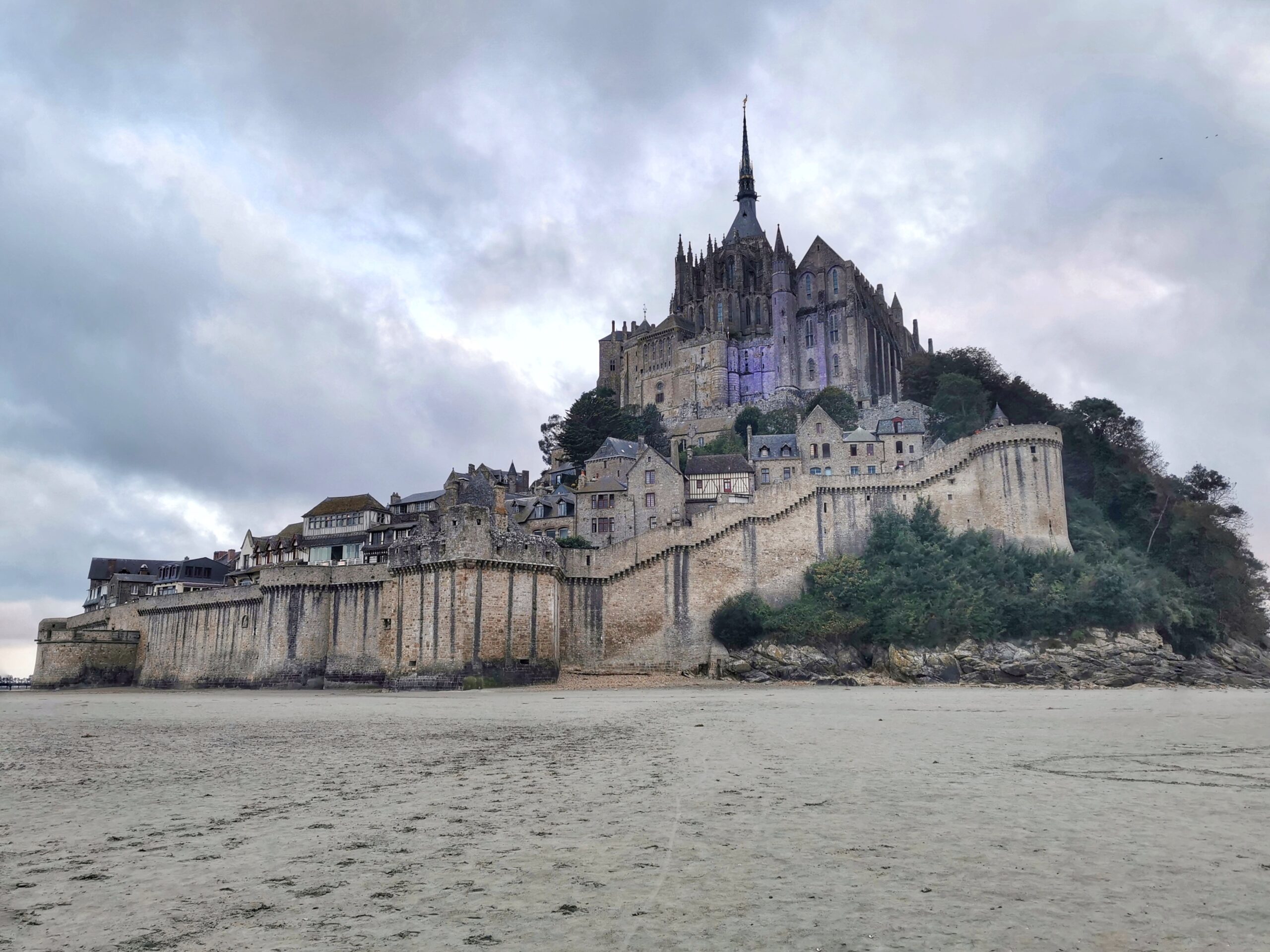 Nach ca. 2h Autofahrt sind wir an einem der kleinsten und berühmtesten Gemeinden Frankreichs angekommen: Le Mont-Saint-Michel. Weltweite Berühmtheit erlangte vor allem die kleine, nach dem Erzengel Michael benannte Insel in der Küstenregion. Auf der Spitze des Felsen thront eine Kathedrale mit darunter liegenden Gebäuden und Einrichtungen des Klosters (Abtei). Seit 1979 sind sowohl der Klosterberg als auch die umgebende Bucht Teil des UNESCO-Welterbes und werden jährlich von mehreren Millionen Touristen besucht. Ganz ehrlich, ein Kloster mitten im Meer... so einen Ort gibt es wirklich sehr selten.