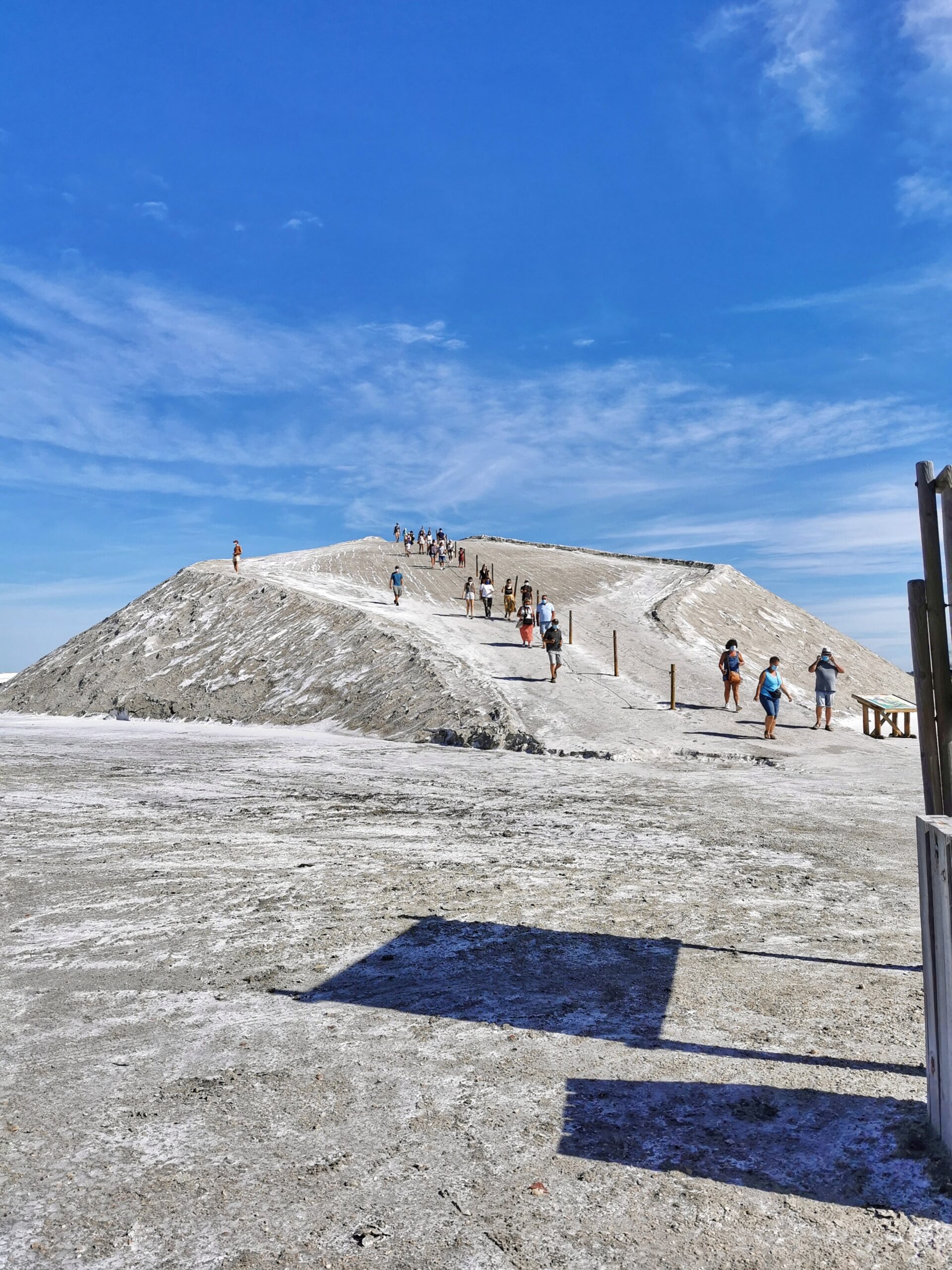 Die Lokomotive hat wirklich cool ausgesehen und hat uns gut gefallen. Punktabzug hat es jedoch bei den Platzverhältnissen gegeben. Wir sind eng an eng mit anderen Touristen gesessen - so viel zu den Corona Maßnahmen. Die Tour hat genau zwei Stopps eingelegt: Der erste Stopp war an einem Salzberg, den man hinaufgehen und die gesamte Anlage überblicken konnte. Das zweite Mal haben wir beim Salzmuseum angehalten.