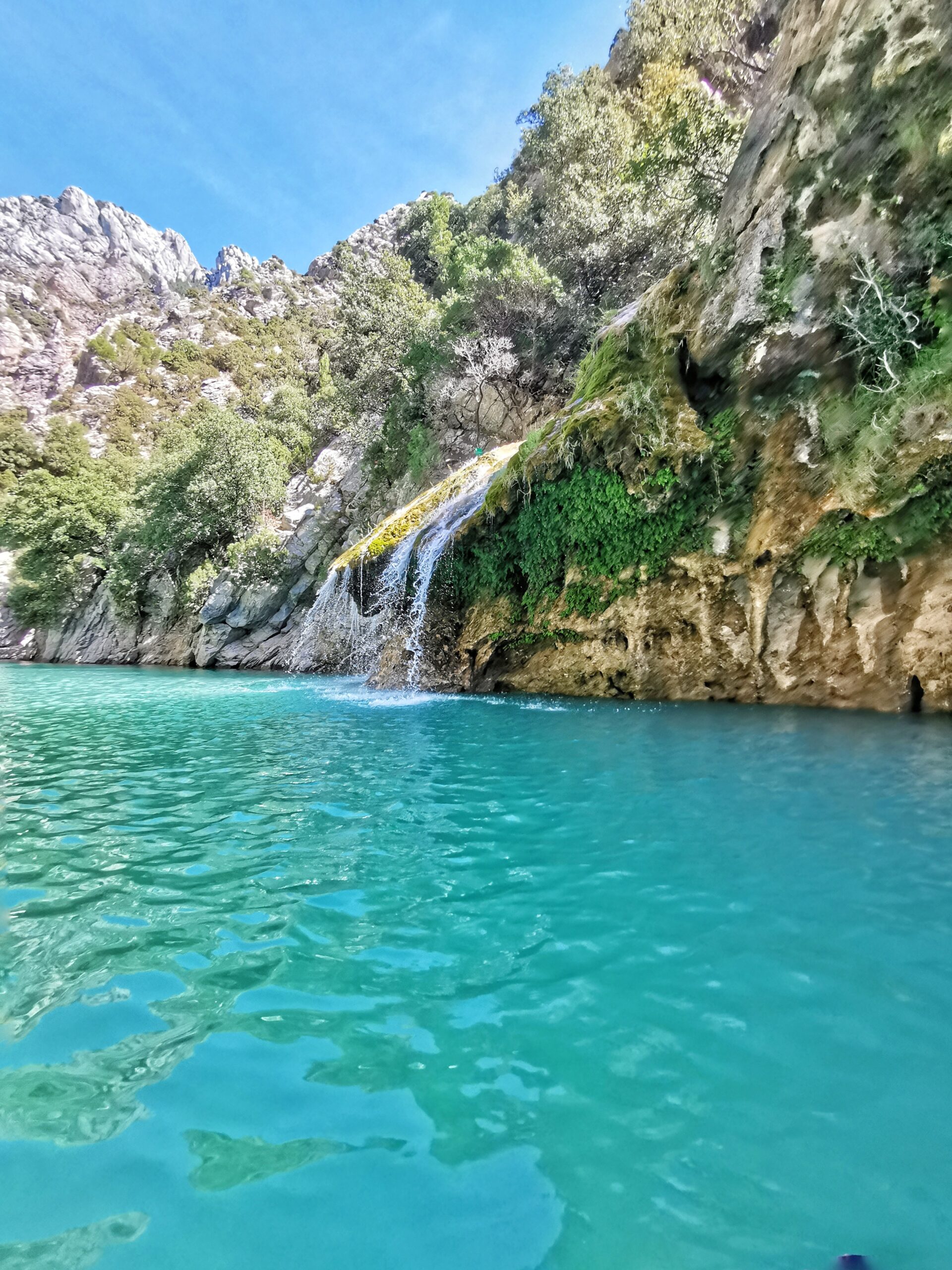 Das Wasser ist wirklich so türkisblau wie ihr auf den Bildern sehen könnt. Michael hat sich als Gondoliere einen wirklich guten Job gemacht 😀 Der Verdoncanyon ist wirklich phänomenal! Das klare Wasser, die steilen Felsformationen und die kleinen Wasserfälle, die über moosbewachsene Felsen in den Fluss plätschern ergeben ein einzigartiges Landschaftsbild. Wir sind ca. 1,5 h mit dem Stand Up Paddle gepaddelt und haben die Ruhe der Natur auf uns wirken lassen.