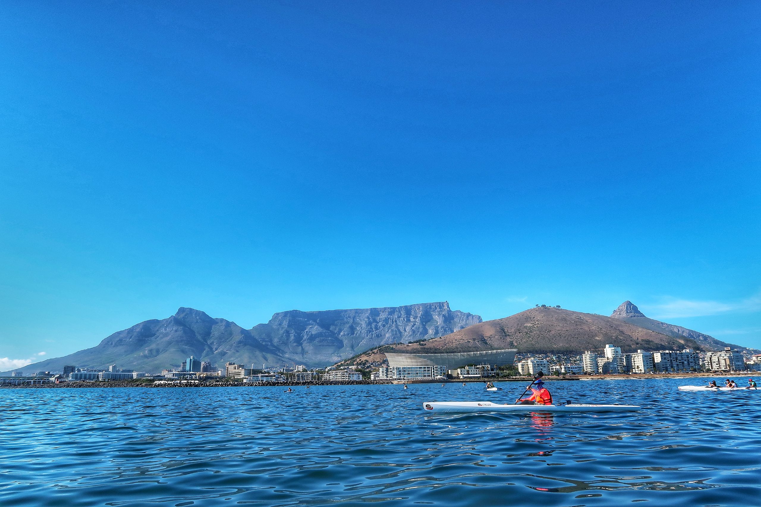 Als wir unser Auto am Parkhaus abgestellt haben, sind wir auch schon auf die restlichen Teilnehmer getroffen und wurden mit dem nötigen Equipment ausgestattet. Nach einer kurzen Einweisung und Ausstattung mit Schwimmwesten + Paddel ist unsere Tour um 07:30 Uhr morgens am Steg des Oceana Power Boat Clubs gestartet. Wir sind insgesamt zwei Stunden auf dem Atlantik vor Kapstadt gepaddelt und haben Buckelwale, Delphine und Pinguine gesehen. Die Tourguides Jordan und Shanti sind richtig cool gewesen und haben diese Unternehmung zu einem unvergesslichen Erlebnis gemacht!