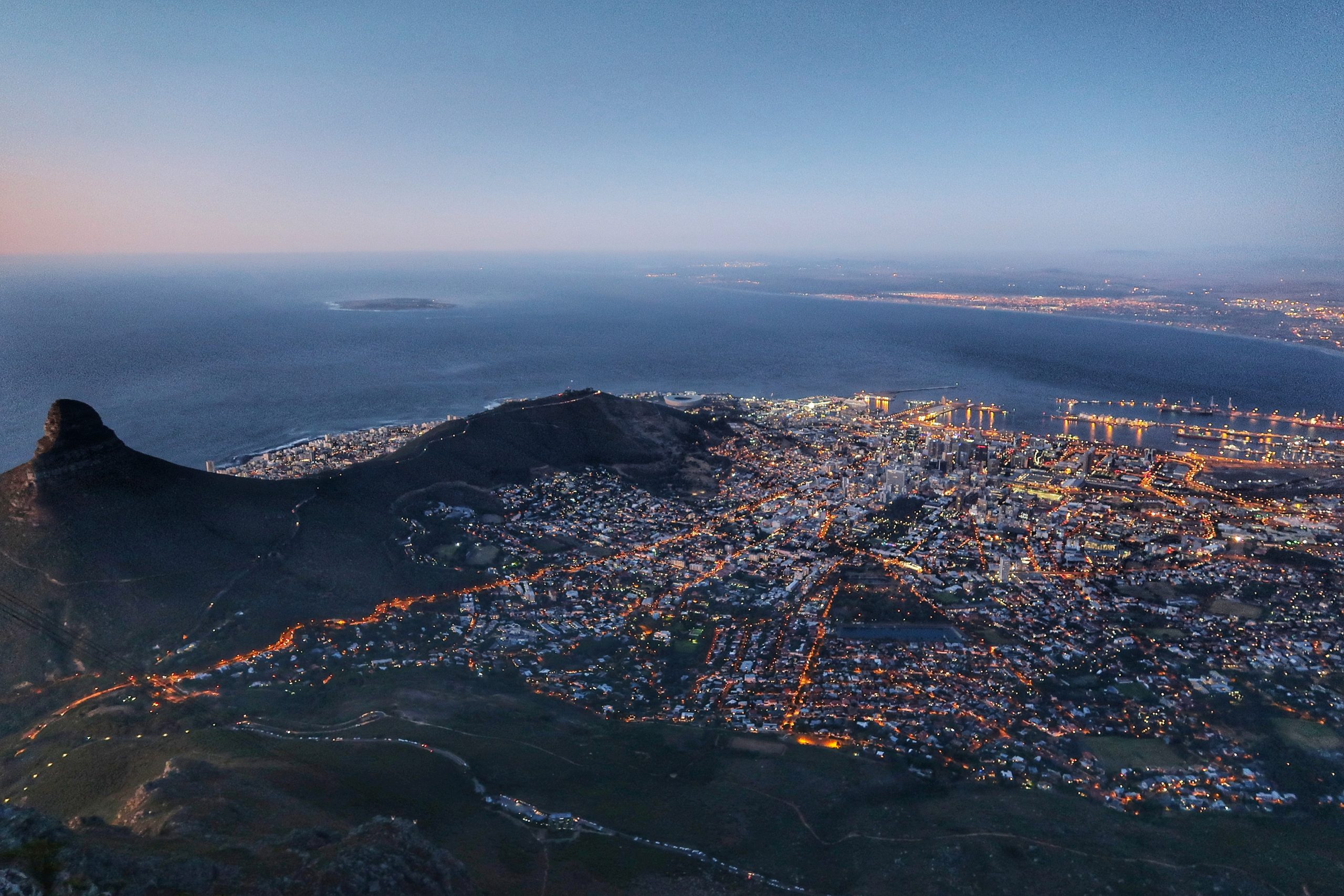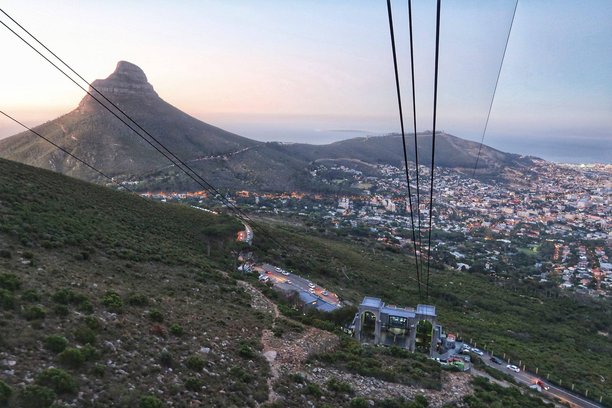 Ursprünglich wollten wir bis 00:00 Uhr auf dem Tafelberg den Sonnenuntergang genießen, spazieren zu gehen und  anschließend das Feuerwerk betrachten. Bei der Auffahrt ist uns jedoch ein Strich durch die Rechnung gemacht worden, denn die letzte Gondel sollte den Berg gegen 22:00 Uhr verlassen. Tatsächlich hätten wir länger auf dem Berg bleiben können, jedoch wäre das nur mit einem Abstieg bei Nacht und zu Fuß möglich gewesen. Wir haben uns dagegen entschieden, da unser Auto direkt an der Seilbahnstation gestanden hat.