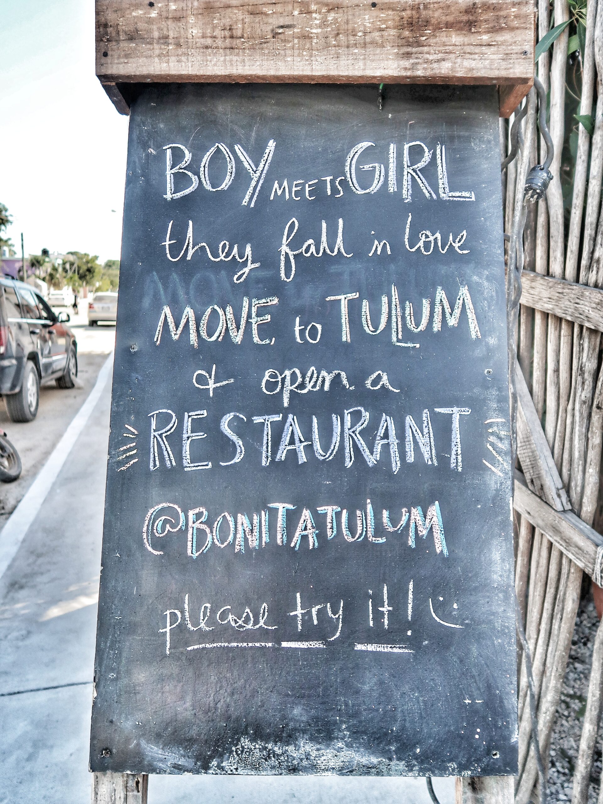 TOTAL BEGEISTERT! Die Story hinter der Bonita Burger Bar hat uns dazu verleitet, das Restaurant zu besuchen. Wir sind in Tulum bummeln gewesen und haben Hunger bekommen (was auch sonst). Wir haben ein Schild entdeckt, auf dem Folgendes gestanden ist: "BOY meets GIRL. They fall in love. Move to Tulum & open a Restaurant. @Bonitatulum - please try it! :)". Angelika hat Michael angeschaut und er hat es schon geahnt - DA WILL SIE REIN! Wir haben die leckersten Burger in der Gegend gegessen und waren richtig begeistert 😀