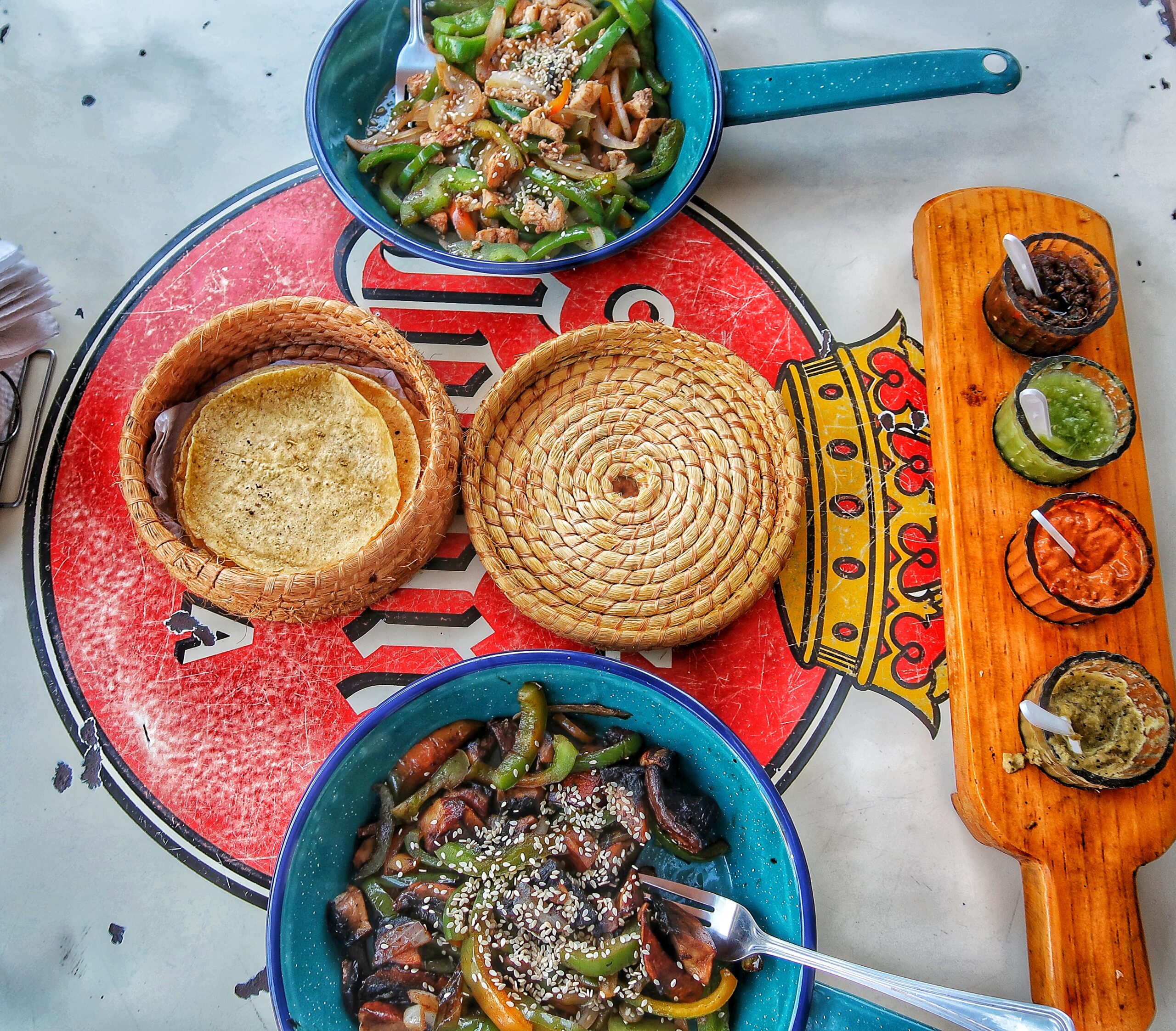 In Cozumel haben wir richtig Lust auf mexikanisches und scharfes Essen bekommen 😀 Bei Los 4 Tacos sind wir fündig geworden. Der kleine und unscheinbare Laden hat eine große Auswahl verschiedenster lokaler Speisen. Wir haben uns für die vegane Auswahl der Vegetarian Fajitas entschieden und ca. 7,40 € pro Portion bezahlt. Es hat so so lecker geschmeckt, dass wir nochmal nach Tortillas gefragt haben, um diese mit den köstlichen Beilagen zu befüllen. Das hat uns eine Menge Spaß gemacht 🙂 Nur Michael hat die scharfen Soßen etwas unterschätzt  - HOT HOT HOT!