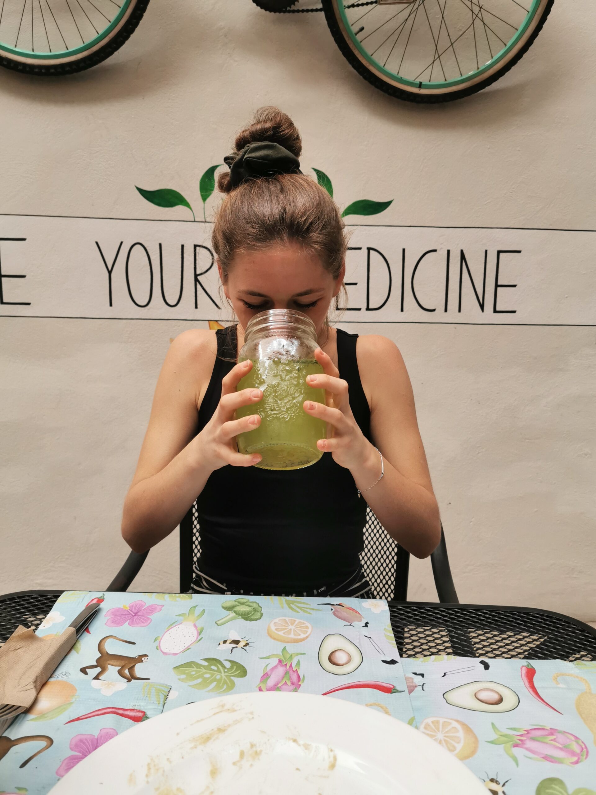 La Senda ist ein kleines und farbenfroh gestaltetes Restaurant in Playa del Carmen. Dort haben wir uns als Gäste sehr wohl gefühlt und sind vorbildlich bewirtet worden. Die Wände sind so kreativ bemalt und überall sind schöne Pflanzen gestanden. Allein der Spruch an der Wand: "LET FOOD BE YOUR MEDICINE" hat uns direkt abgeholt. Uns hätte es sehr gewundert, wenn es hier nichts Veganes/Vegetarisches gegeben hätte. Die Soße von den Entomatadas haben Angelika leider nicht umgehauen. Auch Michaels Gericht hat sie weniger angesprochen. Der Humus und die frischen Säfte haben gut geschmeckt.