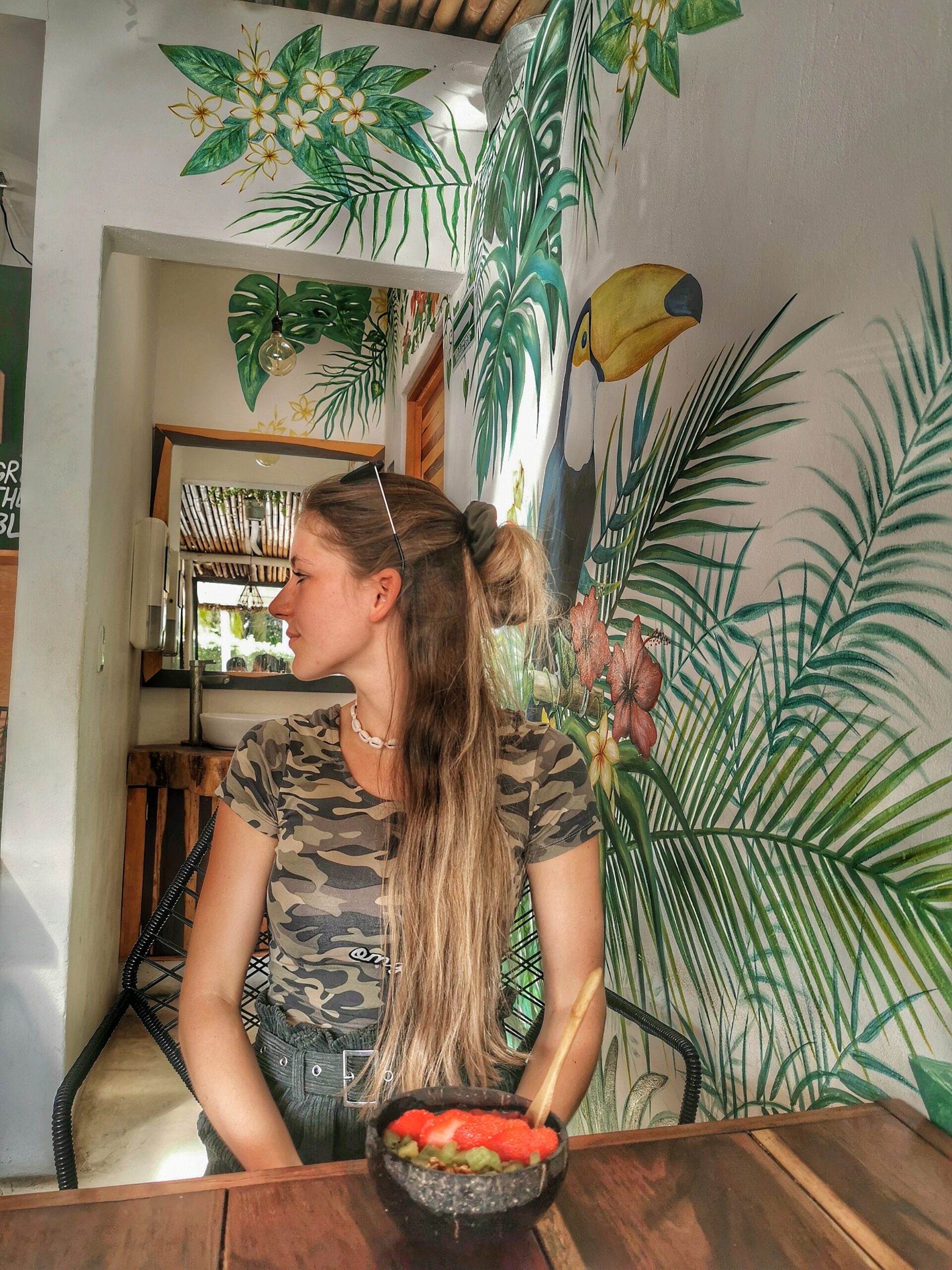 Also eins muss man den Mexikanern lassen: Sie haben wunderschöne und bunt dekorierte Restaurants. Man sitzt im Fresko Habito und fühlt sich wie im Dschungel. Durch Zufall hat Angelika sogar ein camouflage-farbendes Shirt angehabt, das hat super gematched! 😀 Unsere bestellten Gerichte haben auch perfekt zum Ambiente gepasst und waren erfrischend lecker. Klare Empfehlung von unserer Seite!