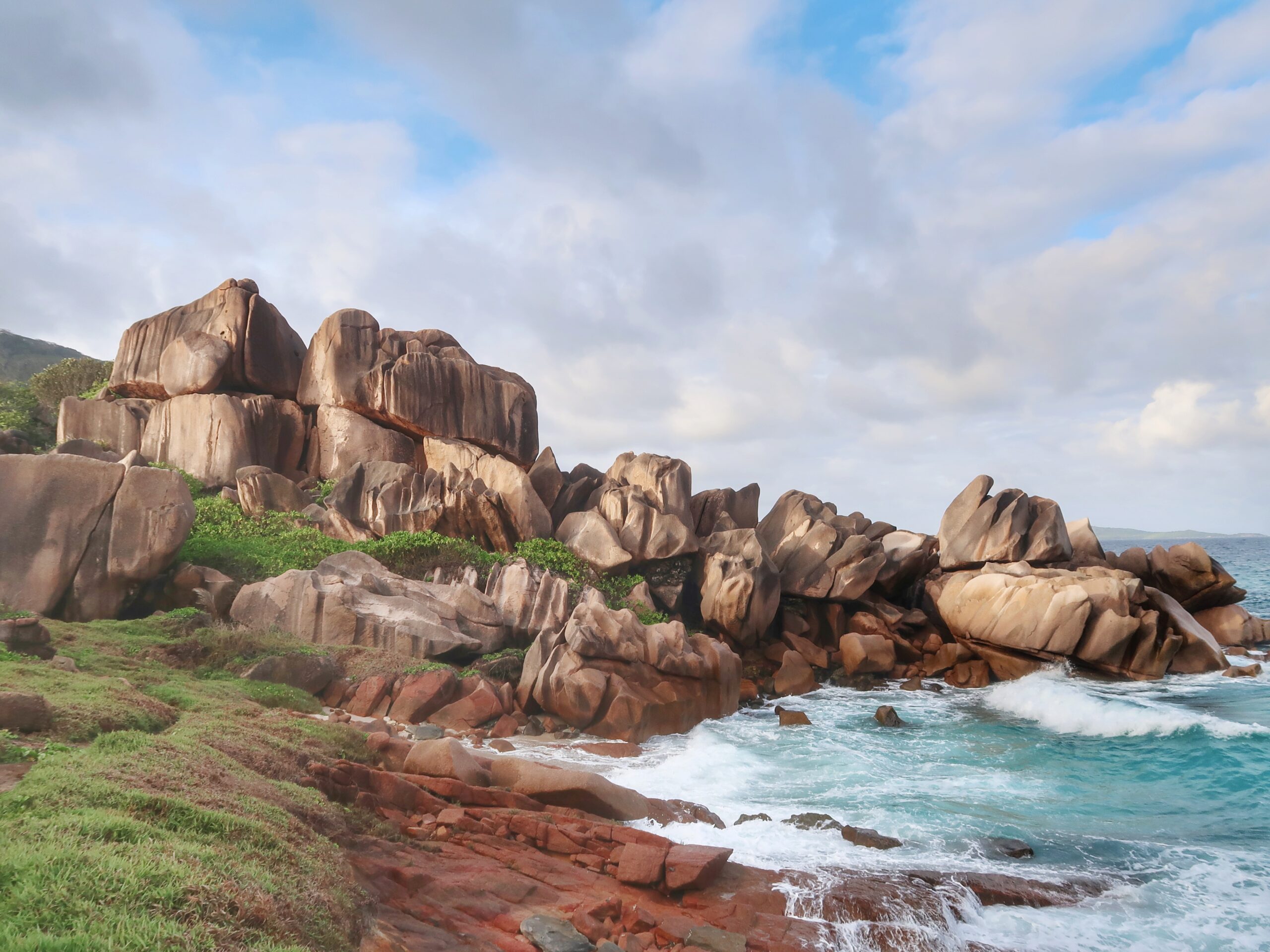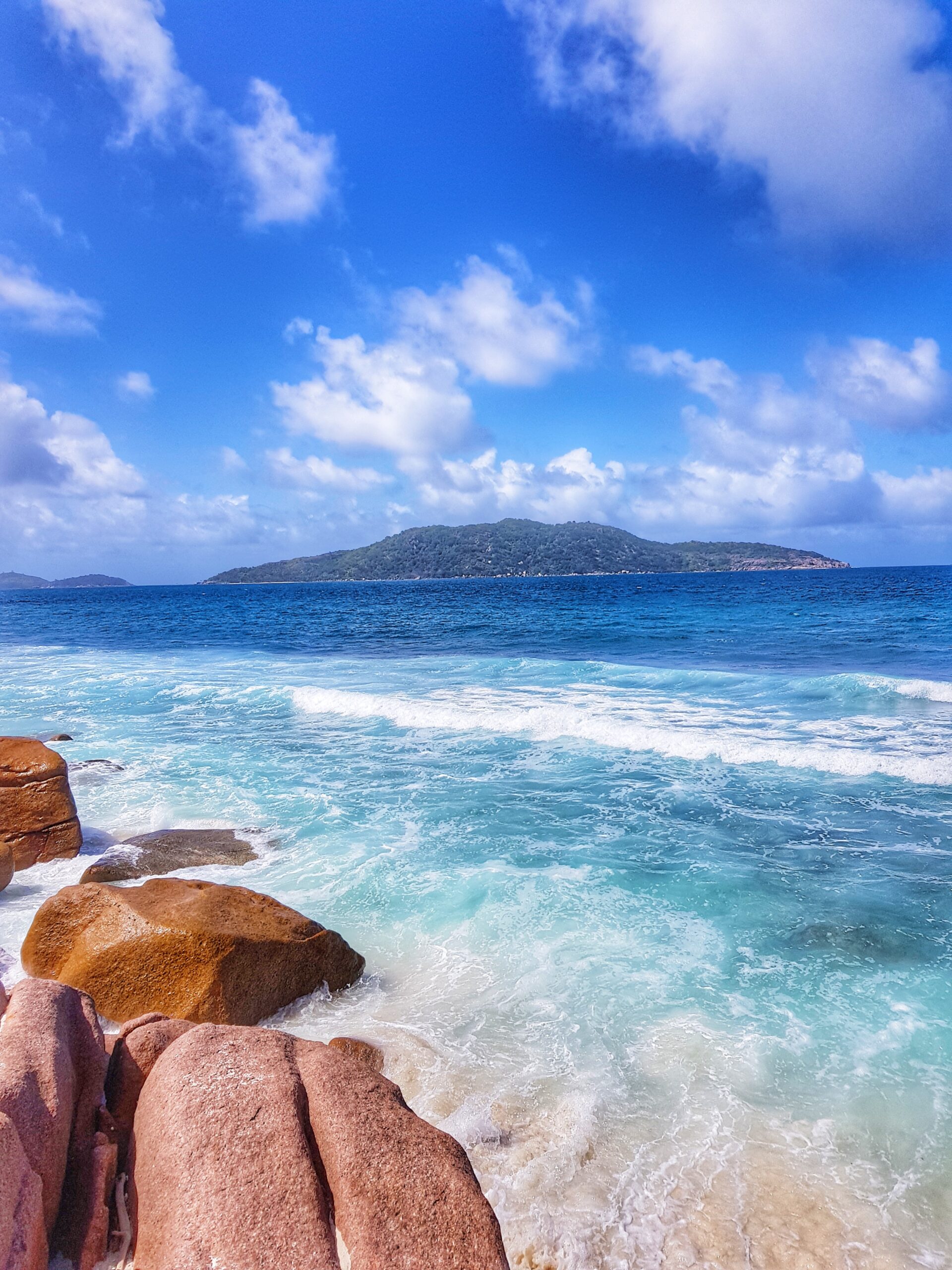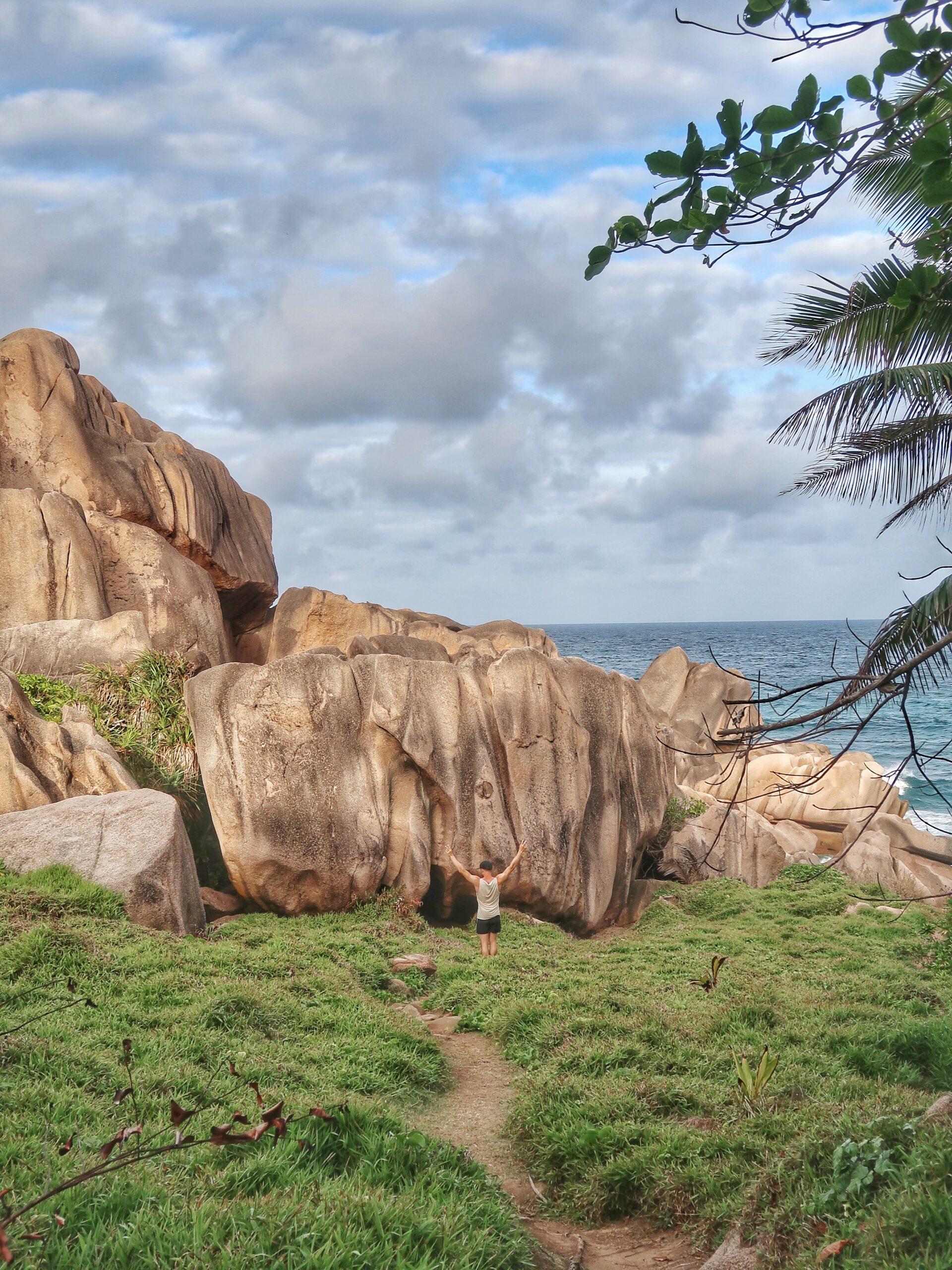 Wenn ihr vom Hauptaussichtspunkt weiter Richtung Norden wandert, könnt ihr einen versteckten und wirklich einzigartigen Spot - das Eagle's Nest- finden. Ihr wollt die beste Aussicht von der kompletten Insel La Digue? Dann nichts wie rauf auf die spitzen Felsen! Von dort habt ihr einen einzigartigen Panoramablick - seht selbst. Im Hintergrund unserer Bilder könnt ihr die kleinen Nachbarinseln Grande Soer, Felice und Marianne sehen.