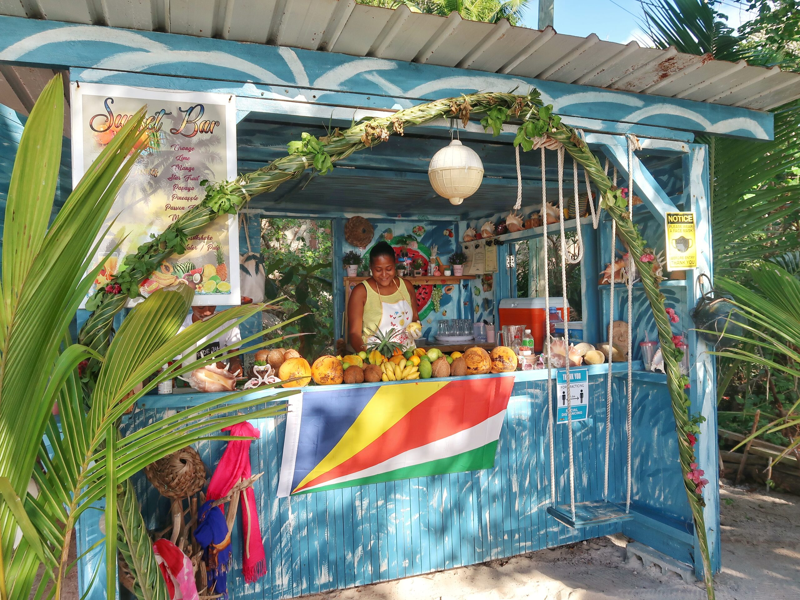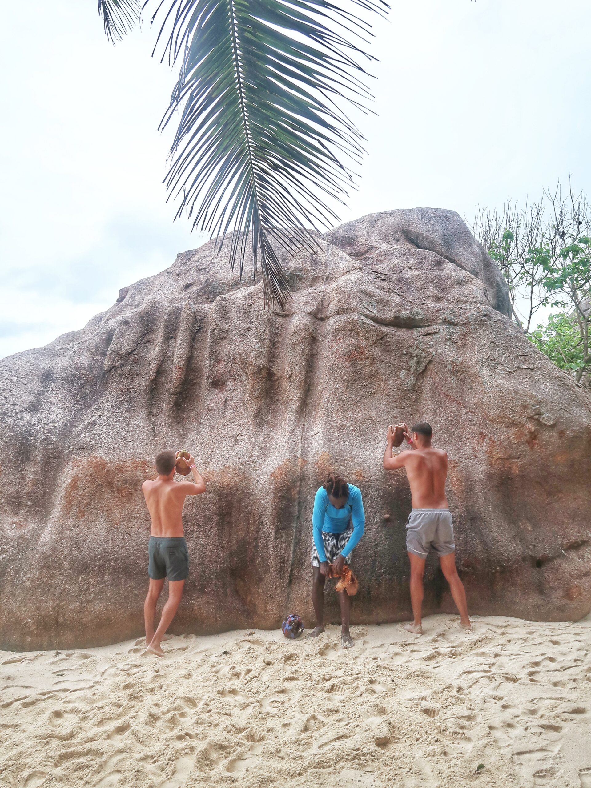 Wir haben uns also zu Fuß auf den Weg gemacht und sind über den Petite Anse Beach bis zum Anse Cocos gewandert, wo wir einen Stopp an der berühmten Coco Bar gemacht haben. Zu unserer Verwunderung ist nahe der Bar einiges los gewesen, viele einheimische Familien haben hier zusammen gegessen, getrunken und getanzt. Die abgelegene und ruhige Atmosphäre fern ab von den touristischen Stränden hat auch für uns einen besonderen Reiz gehabt.