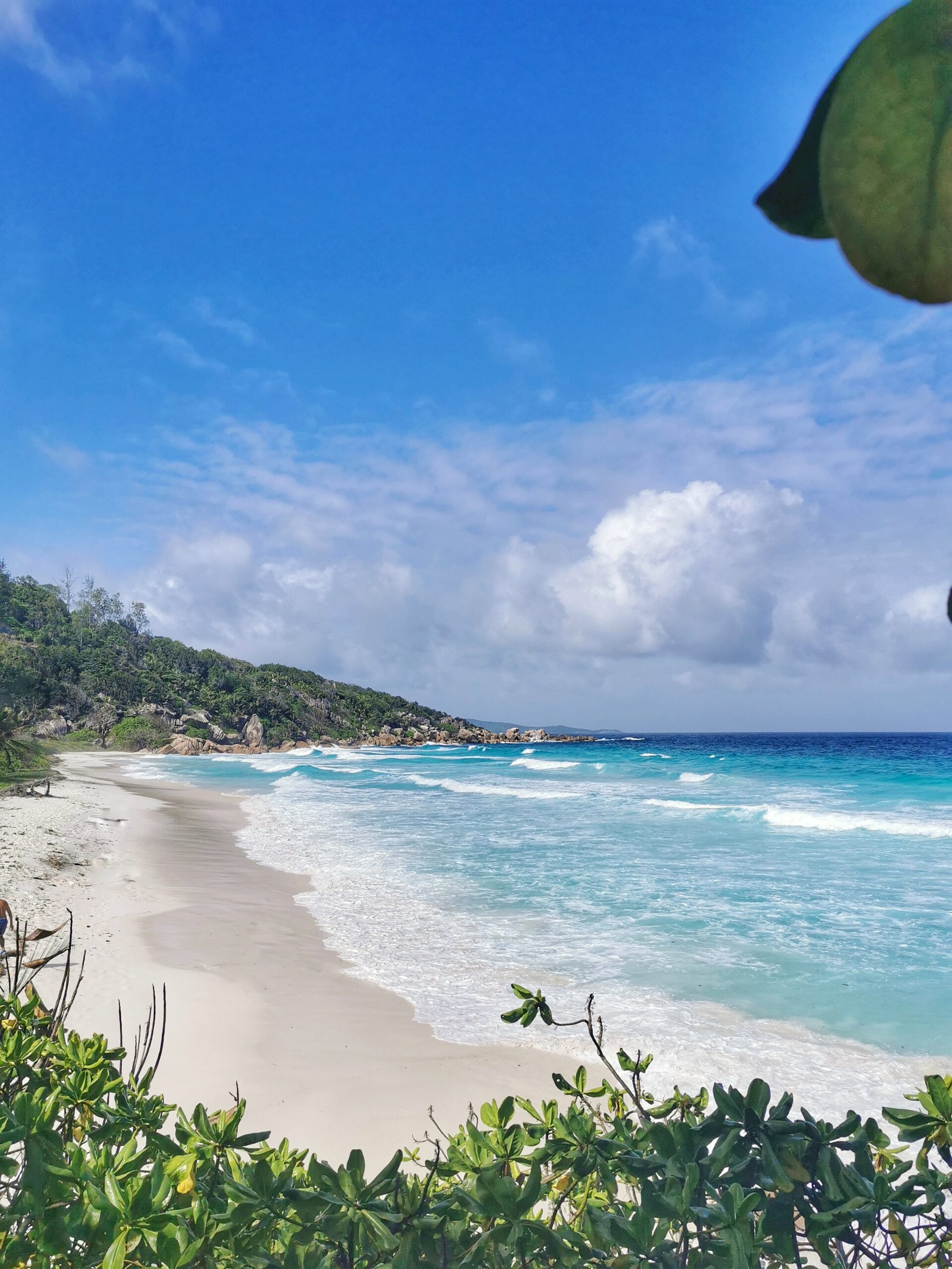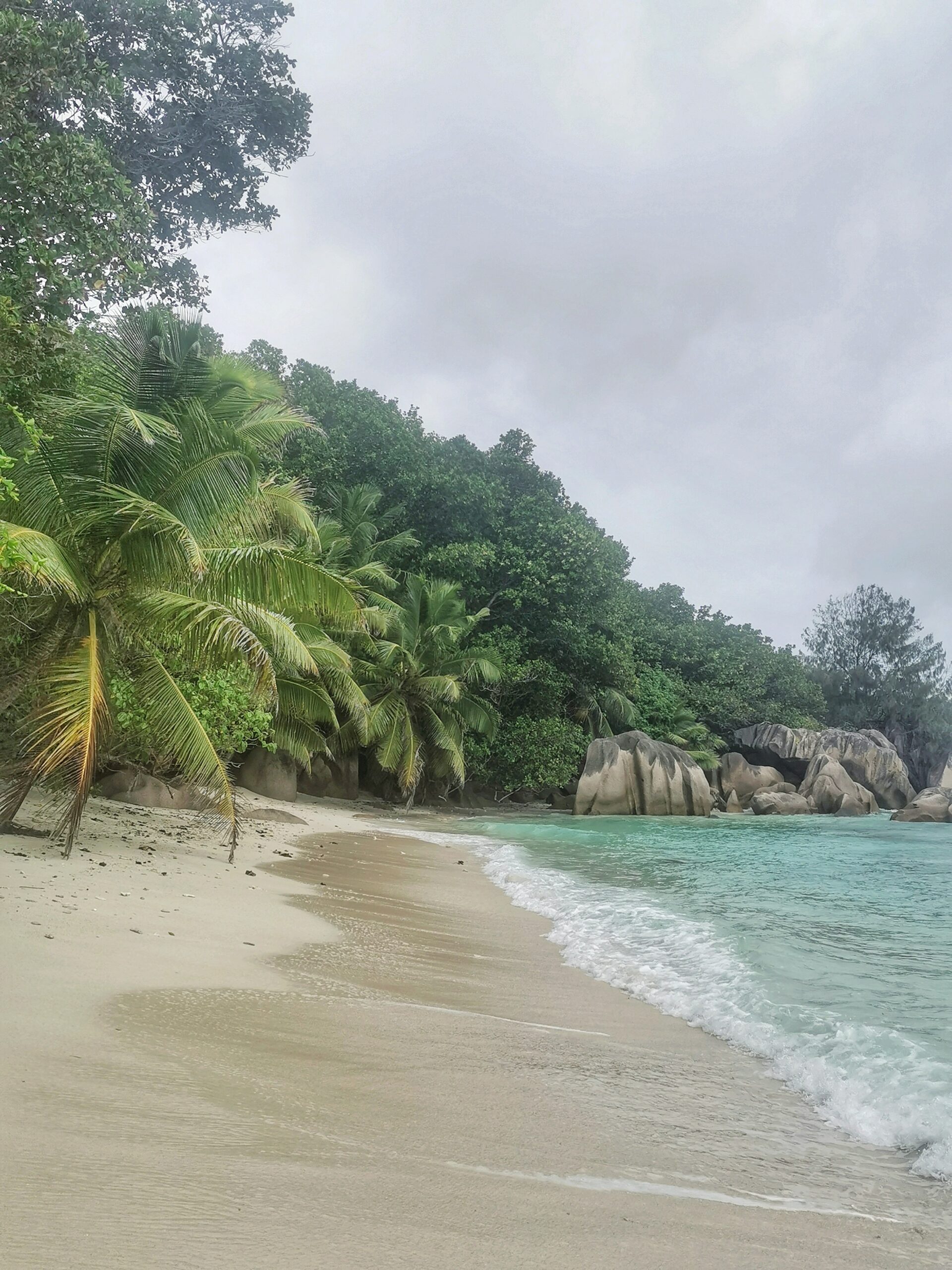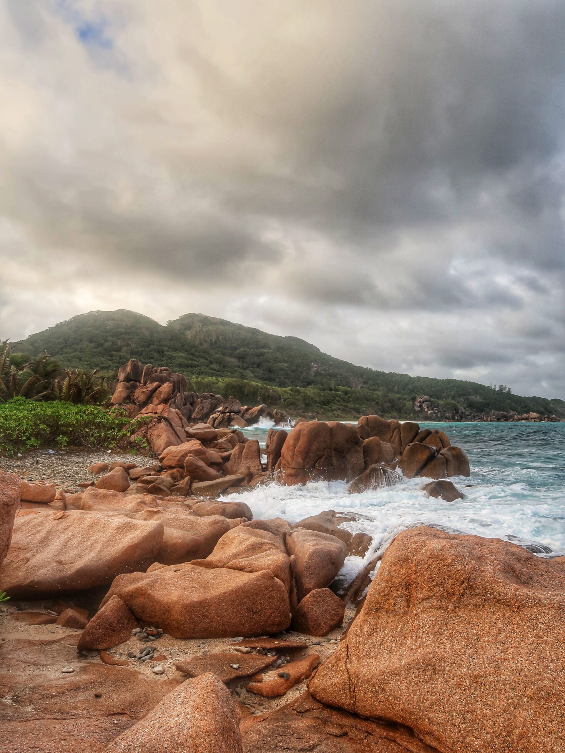 Der Grand Anse Beach ist einer der wenigen erschlossenen Strände auf der Südseite La Digues und für seinen breiten weitläufigen Sandstrand bekannt. Wir persönlich haben den Strand aufgrund seiner Größe genossen, jedoch ist das Schwimmen wegen dem häufig starken Wellengang nicht wirklich zu empfehlen. Michi hat sich trotzdem getraut und ist etwas Wellenreiten gegangen 😀 Hinter dem Sandstrand befinden sich kleine Trampelpfade, über die ihr weitere Strände zu Fuß erreichen könnt. Für einen Beachday ist dieser Küstenabschnitt der perfekte Startpunkt!
