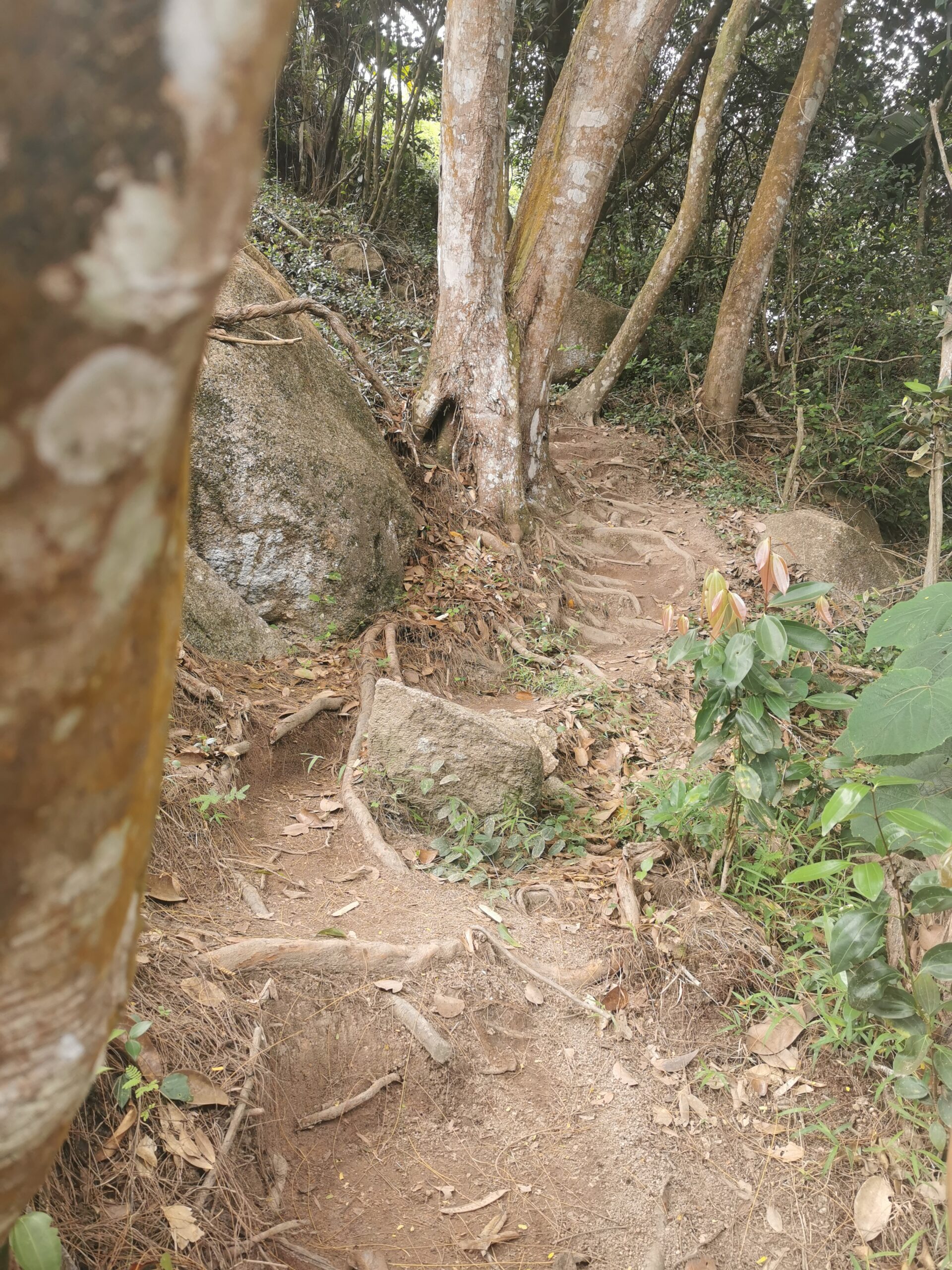 Oben angekommen haben wir erstmal eine kleine Pause einlegen müssen 😀 Der weitere Weg Richtung Aussichtsplattform führt über schmale und steile Pfade, dichte Wälder und Felsen. Insgesamt haben wir uns ca. 1,5 Stunden bis auf die Spitze des Berges geschlagen und haben aufgrund des schwülen Klimas ordentlich geschwitzt.
