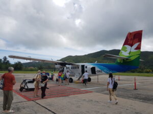Wenn ihr direkt mit dem Flugzeug auf die Seychellen reisen wollt, werdet ihr immer zuerst auf der Insel Mahe auf dem internatinonalen Flughafen (SEZ) landen. Von dort aus könnt ihr entweder euer nächstes Reiseziel ansteuern oder direkt euer Abenteuer starten. Falls ihr von einer anderen Insel wie z.B. Praslin nach Mahe wollt, könnt ihr eine Propellermaschine oder eine Fähre nutzen. Die jeweiligen Fortbewegungsmittel mit ihren Vor- und Nachteilen erklären wir euch im Beitrag Seychellen - Praslin.