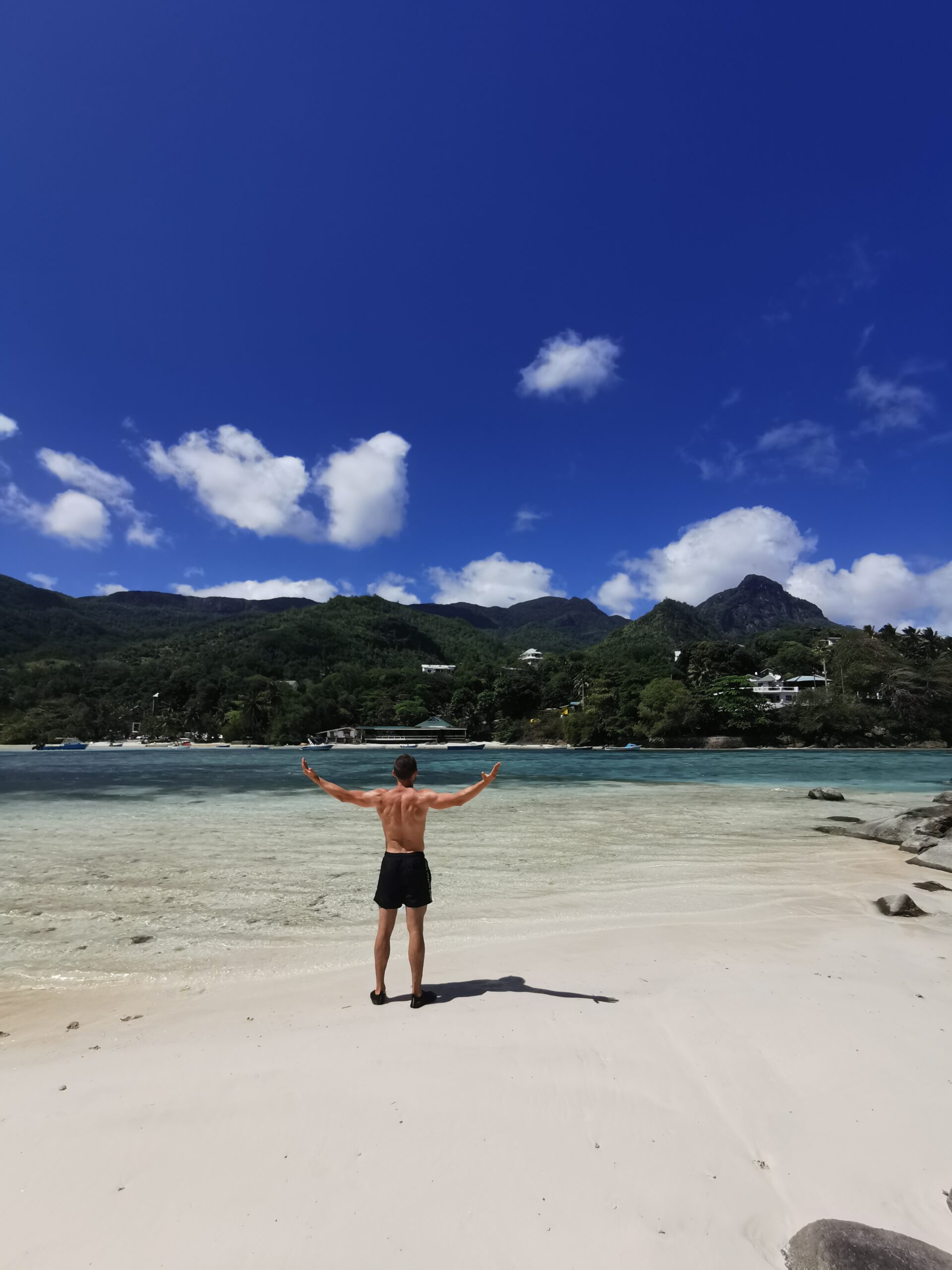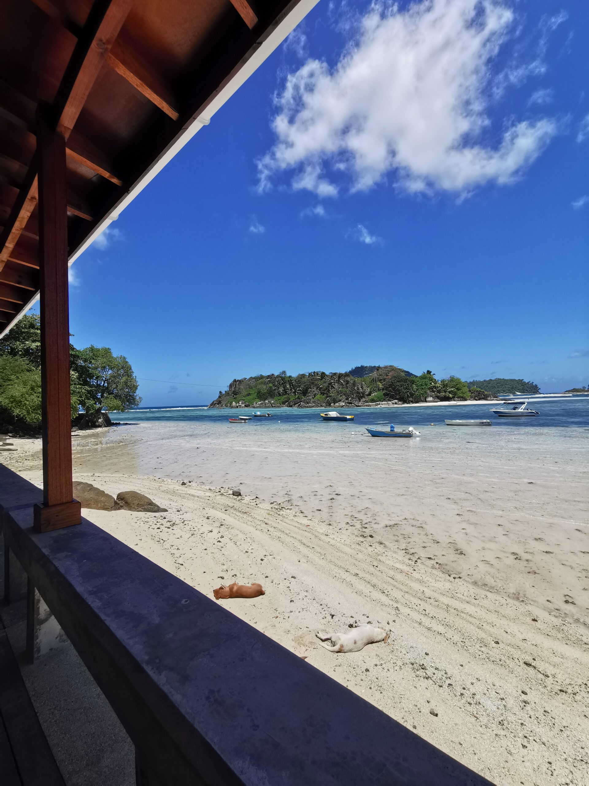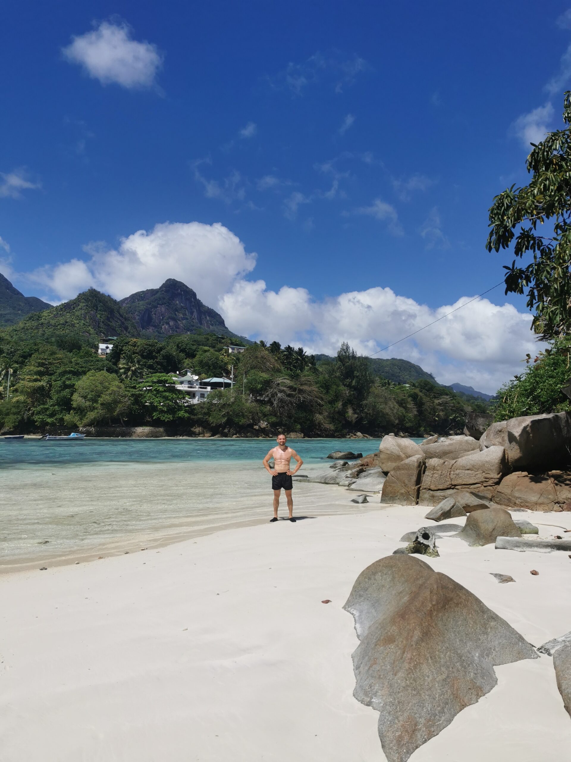 Das sieht ja cool aus, haben wir uns gedacht und uns nach dem Essen ebenfalls auf den Weg gemacht. Der abgelegene Strand ist eines der absoluten Highlights unserer Reise gewesen. Ganz alleine haben wir bei strahlendem Sonnenschein auf dem weißen Sand gelegen und die Idylle mit dem Ausblick auf Mahe genossen. Absoluter Geheimtipp für alle Leser! Übrigens findet hier auf dieser Insel eine russische Reality Show statt.