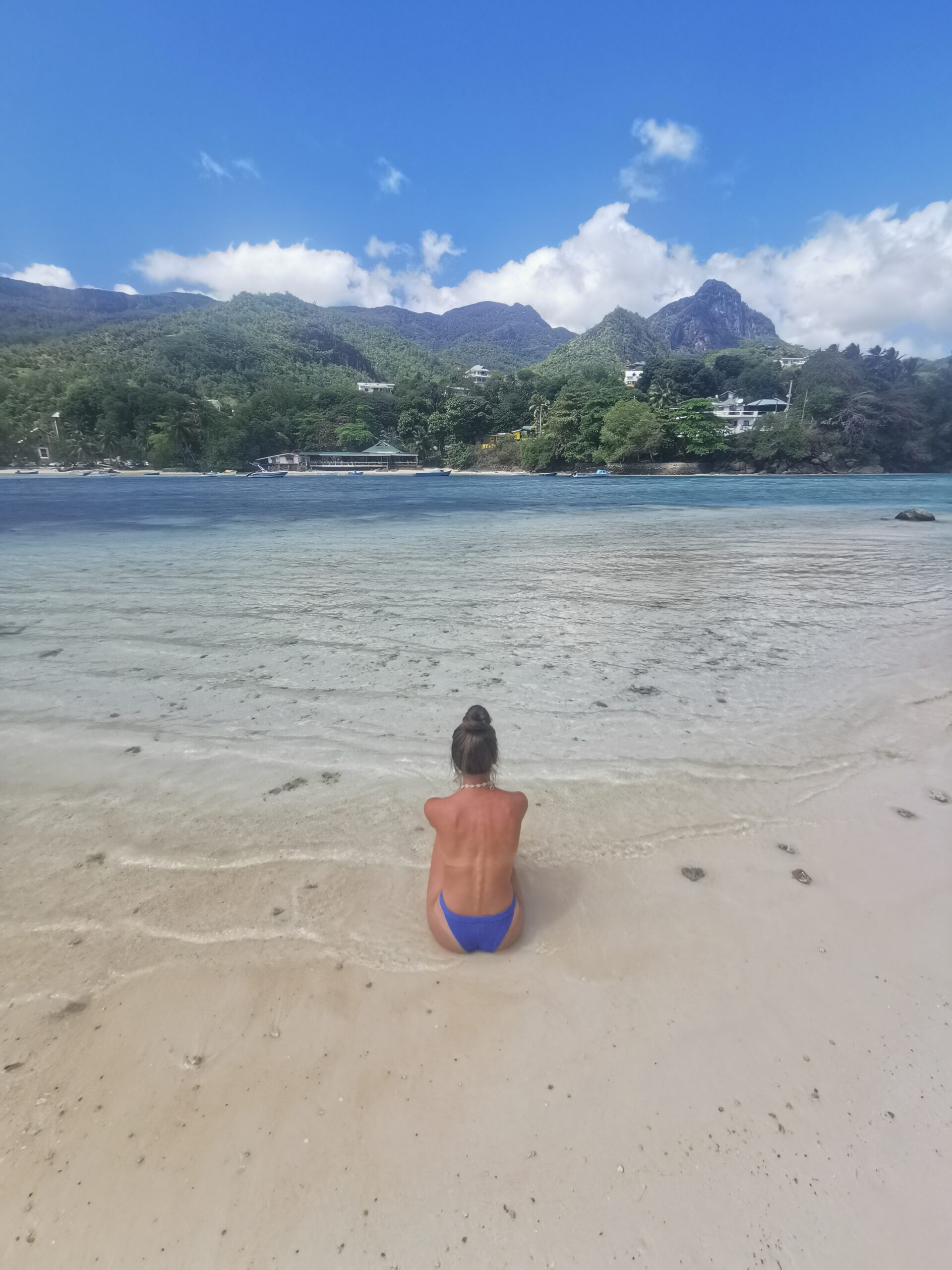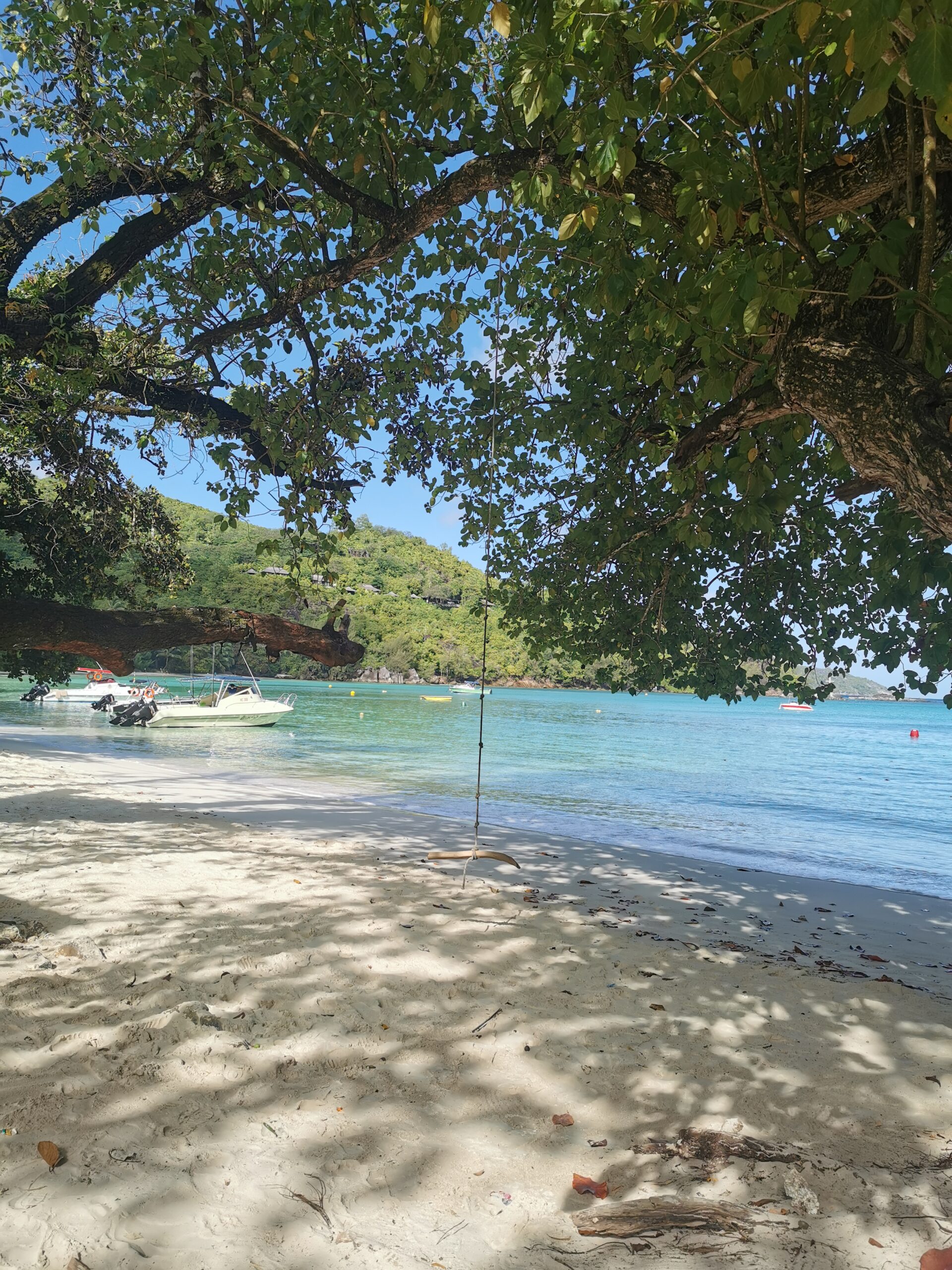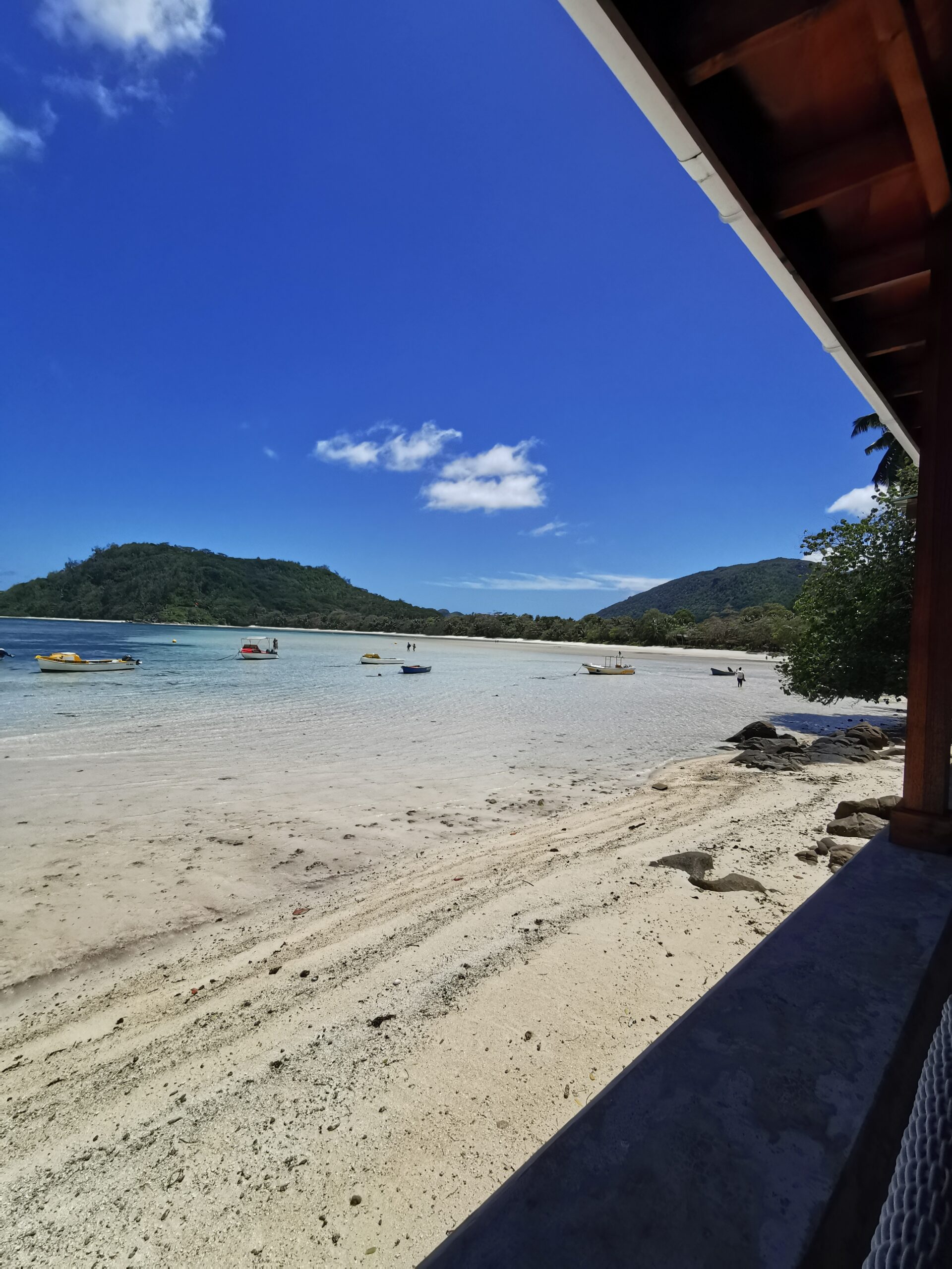 Das sieht ja cool aus, haben wir uns gedacht und uns nach dem Essen ebenfalls auf den Weg gemacht. Der abgelegene Strand ist eines der absoluten Highlights unserer Reise gewesen. Ganz alleine haben wir bei strahlendem Sonnenschein auf dem weißen Sand gelegen und die Idylle mit dem Ausblick auf Mahe genossen. Absoluter Geheimtipp für alle Leser! Übrigens findet hier auf dieser Insel eine russische Reality Show statt.