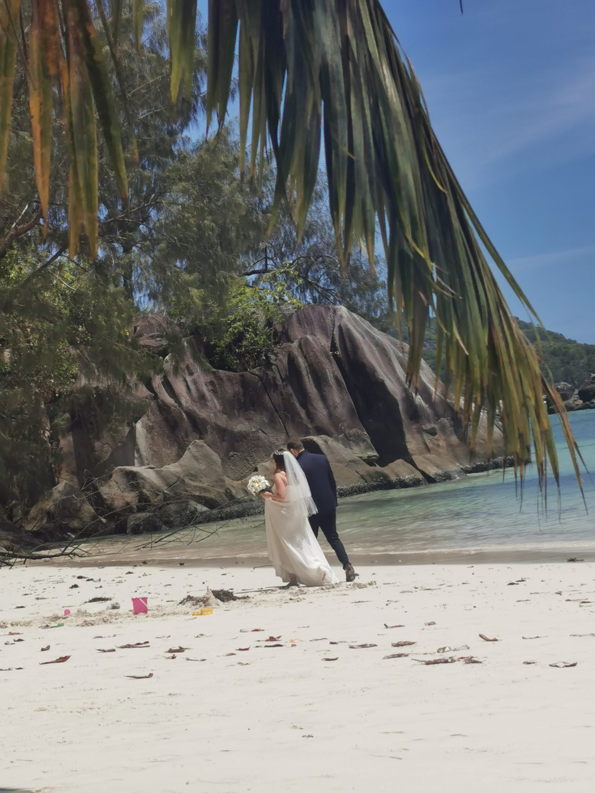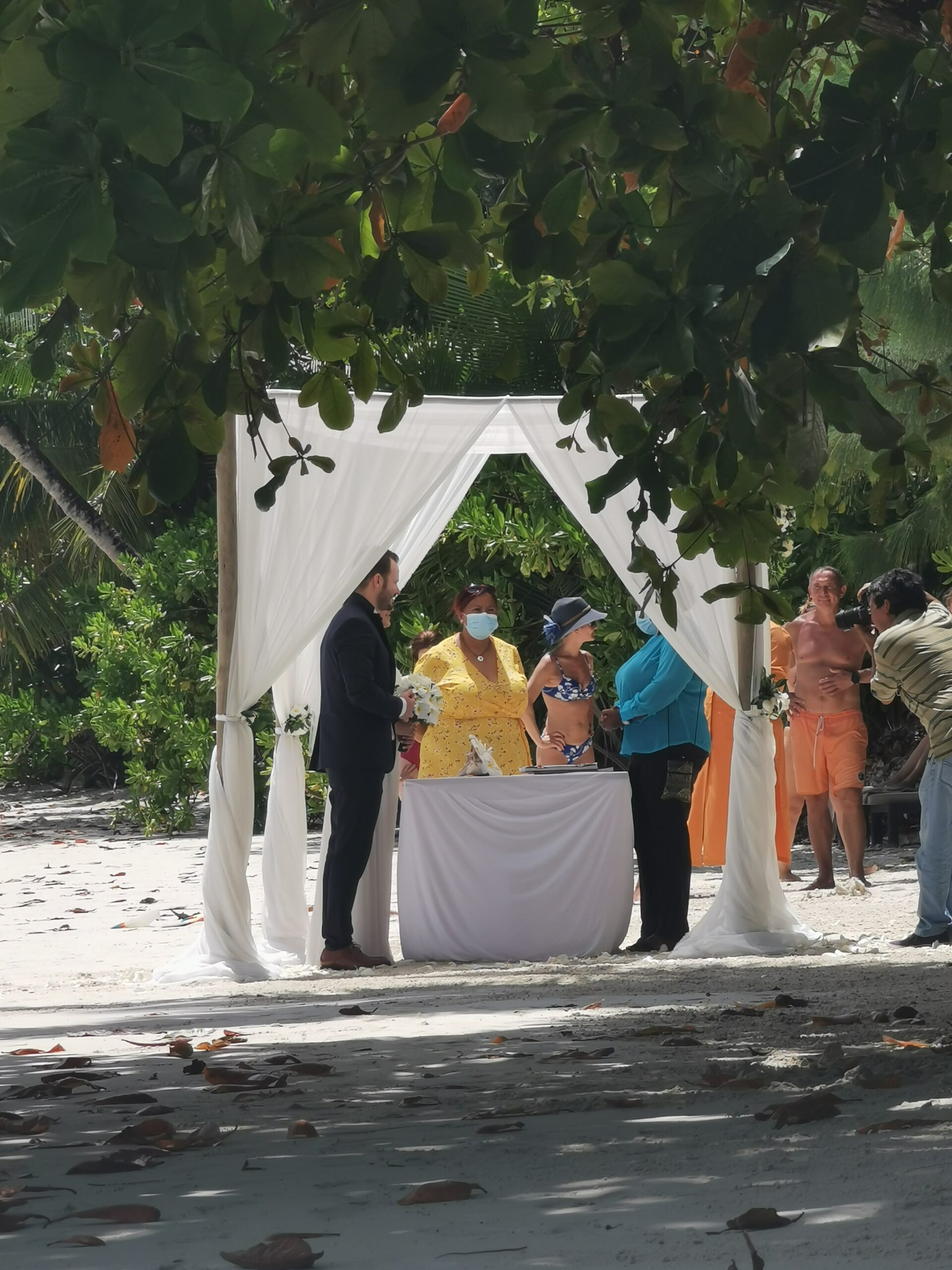 Als wir uns bei ein paar Snacks ausgeruht haben, sind uns Angestellte eines Hotels aufgefallen die Löcher in den Sand gegraben und eine Art Pavillon errichtet haben. Wie wir vermutet haben, sind wir einige Minuten später Zeugen einer Hochzeit am Strand geworden und haben das Brautpaar beim JA-Wort und Shooting am Strand beobachten können. Für uns persönlich ist das eine tolle Erfahrung gewesen, da wir zu diesem Zeitpunkt selbst unsere große kirchliche Hochzeit geplant haben. Aufgrund der Lage und Schönheit geben wir diesem tollen Strand vier Daumen hoch 🙂