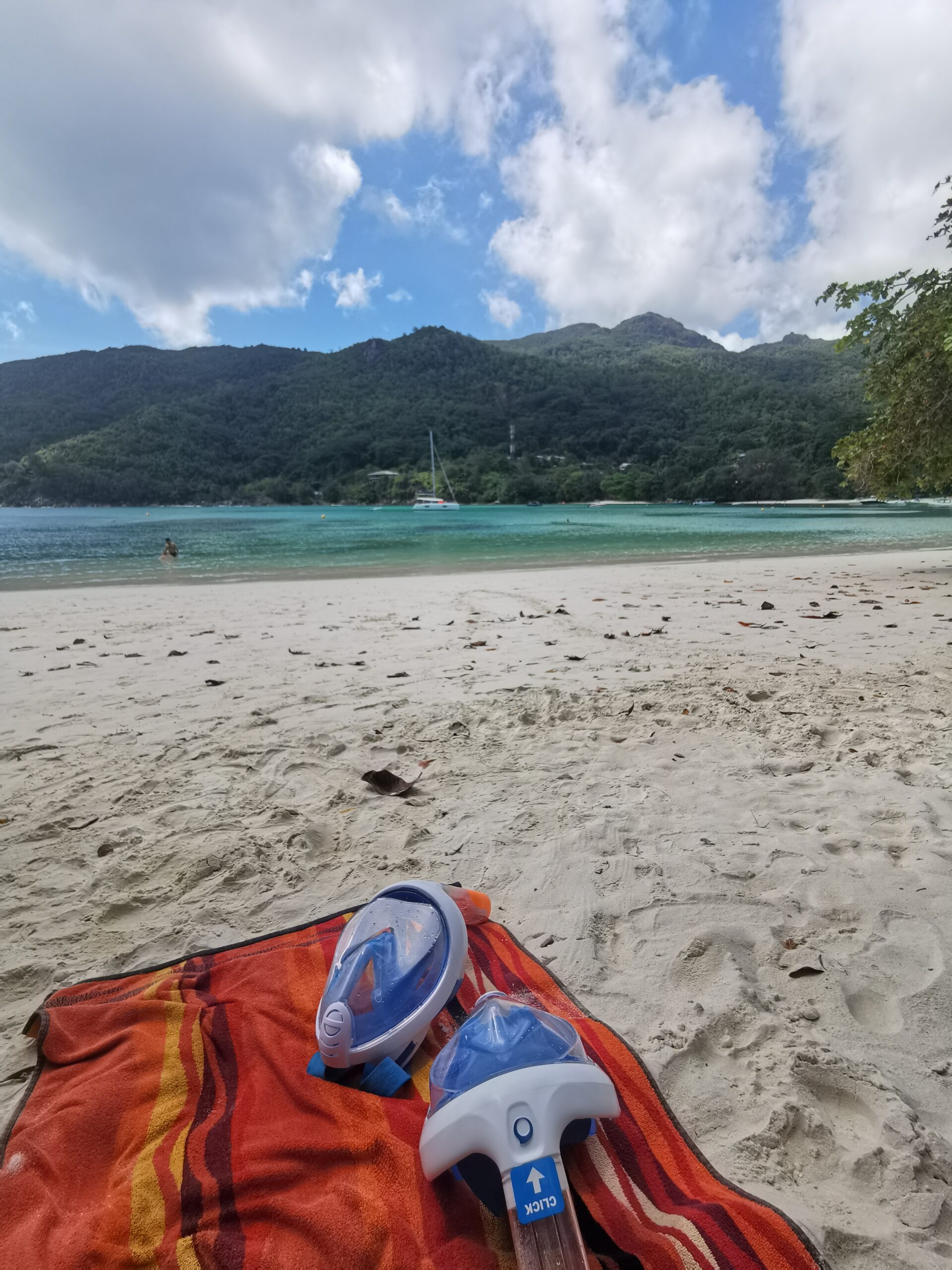 Ein weiterer bekannter Strand ist der Grand Anse Beach. Nicht zu verwechseln mit dem Grand Anse Beach auf der Insel La Digue! Der breite und weitläufige Sandstrand punktet vor allem durch seine flachen und warmen Uferregionen, den tollen Felsformationen und seine frechen Rochen. Warnschilder am Ufer weisen auf die kleinen Rochen hin, die sich munter in Ufernähe tummeln. Am besten solltet ihr hier passende Badeschuhe tragen 😉 Wir nutzen auf Reisen die Badeschuhe von SAGUARO* welche einen angenehmen Tragekomfort besitzen, rutschfest, atmungsaktiv und trittsicher sind. Da wir bisher tolle Erfahrungen mit diesen Schuhen gemacht haben können wir sie euch auch guten Herzens empfehlen.